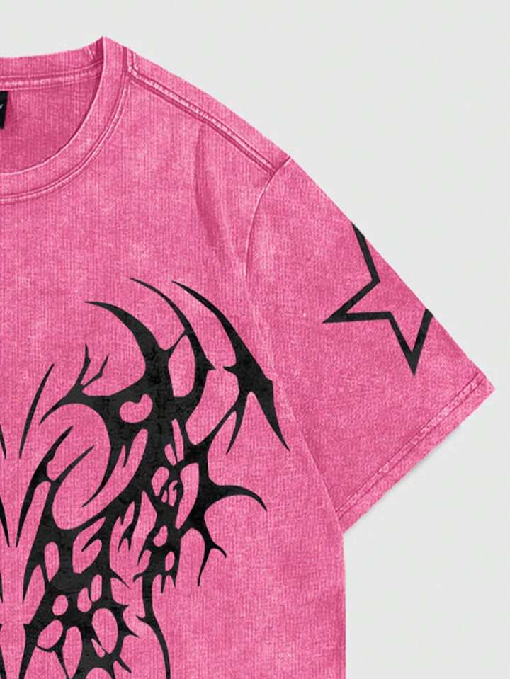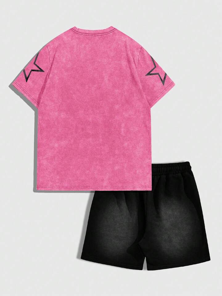 Street Life Conjunto casual de camiseta y pantalones cortos con estampado de colores contrastantes para hombre, de verano