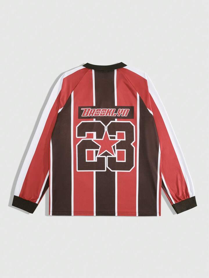 Street Life Camiseta de manga larga casual con rayas de contraste para hombre, otoño