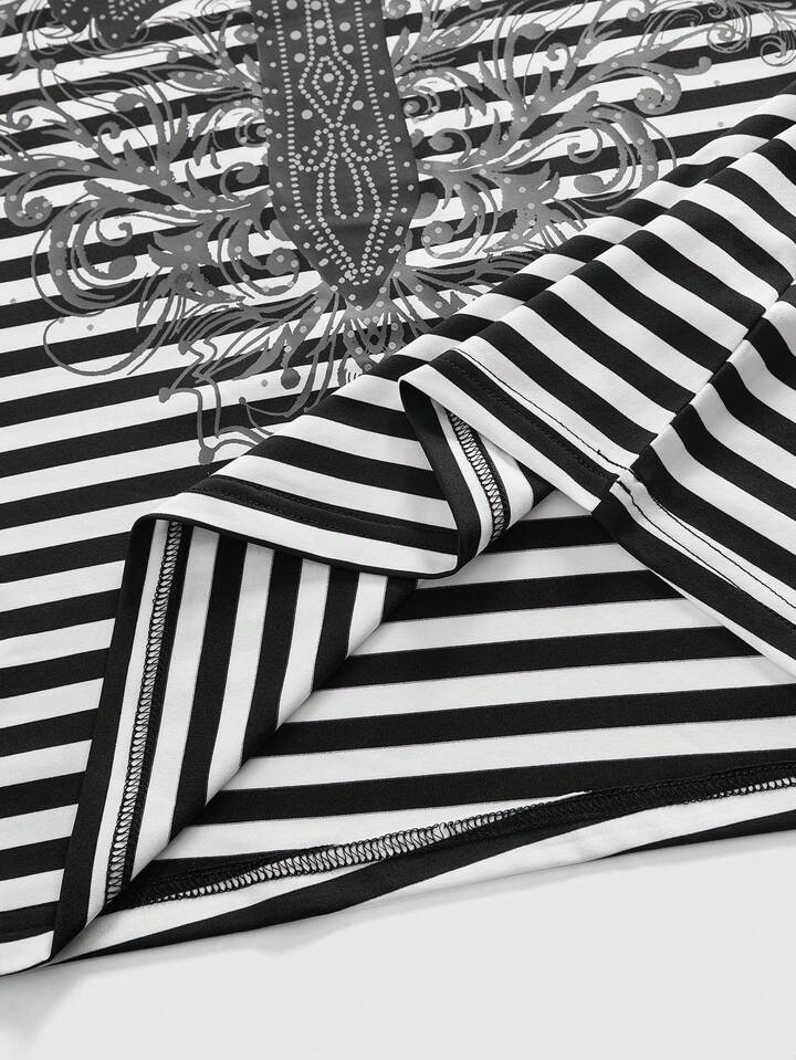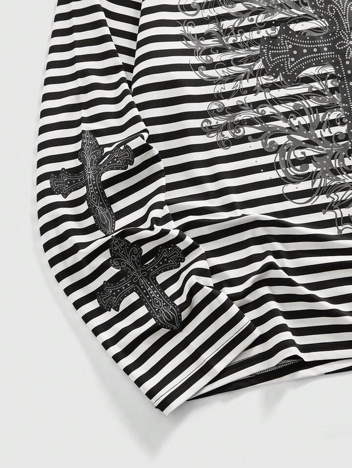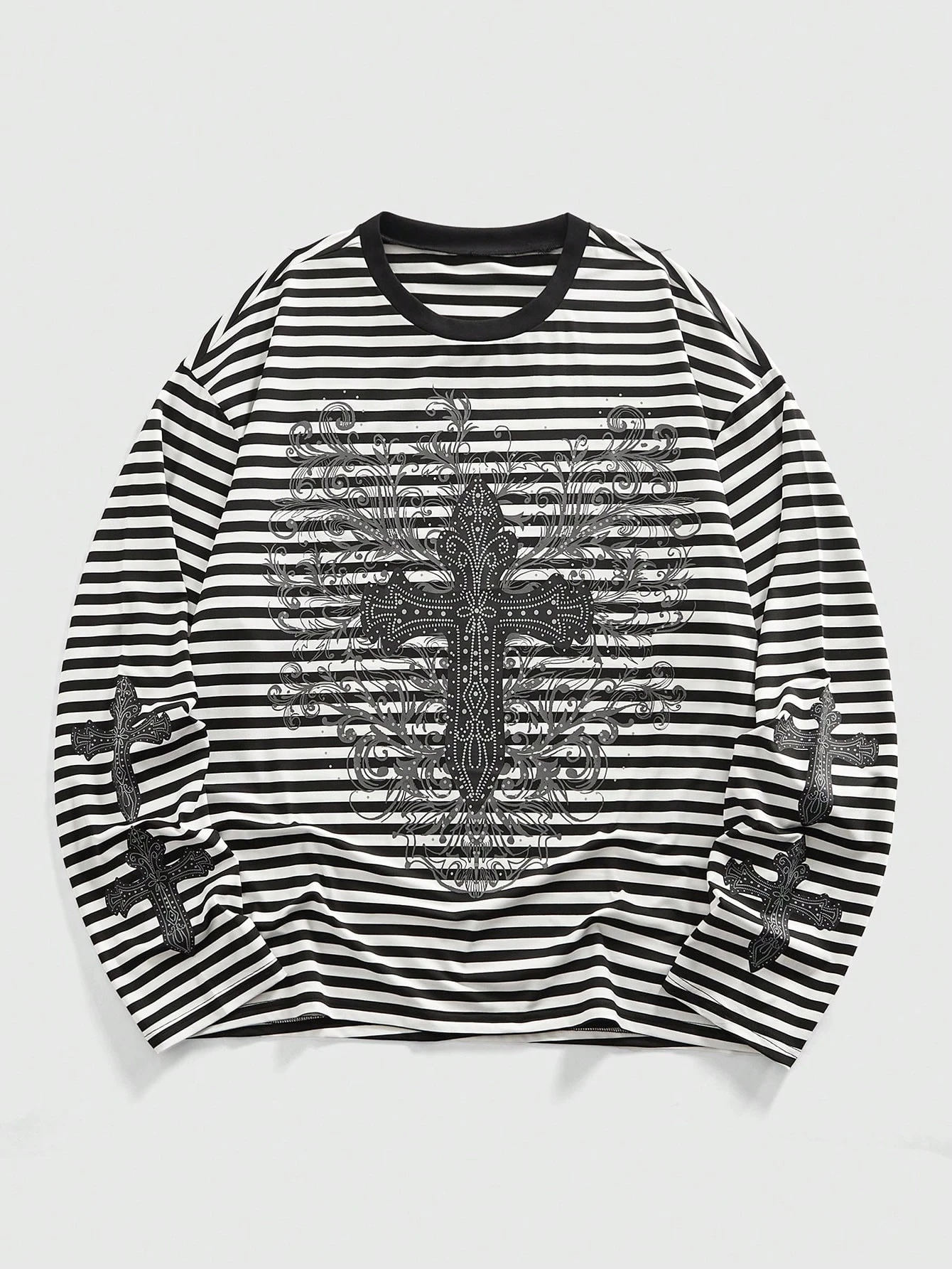 Street Life Camiseta de manga larga de cuello redondo con estampado de rayas cruzadas casual para hombre, otoño