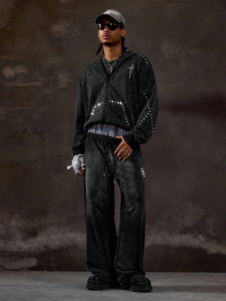 Street Life Pantalones sueltos casuales con cordón y bordado para hombres, para el otoño