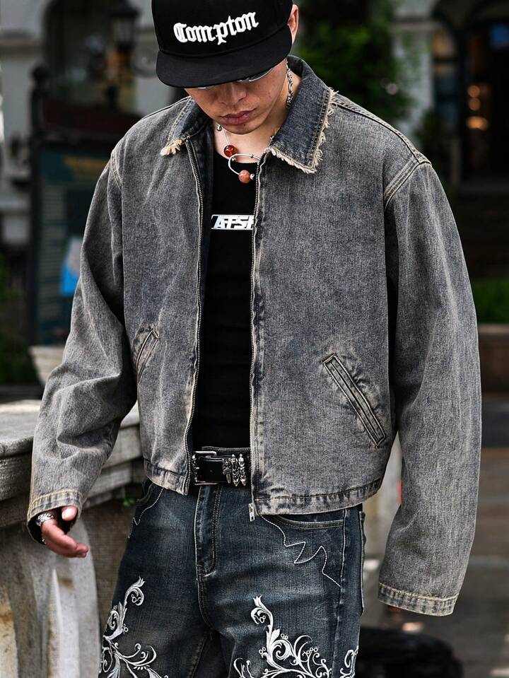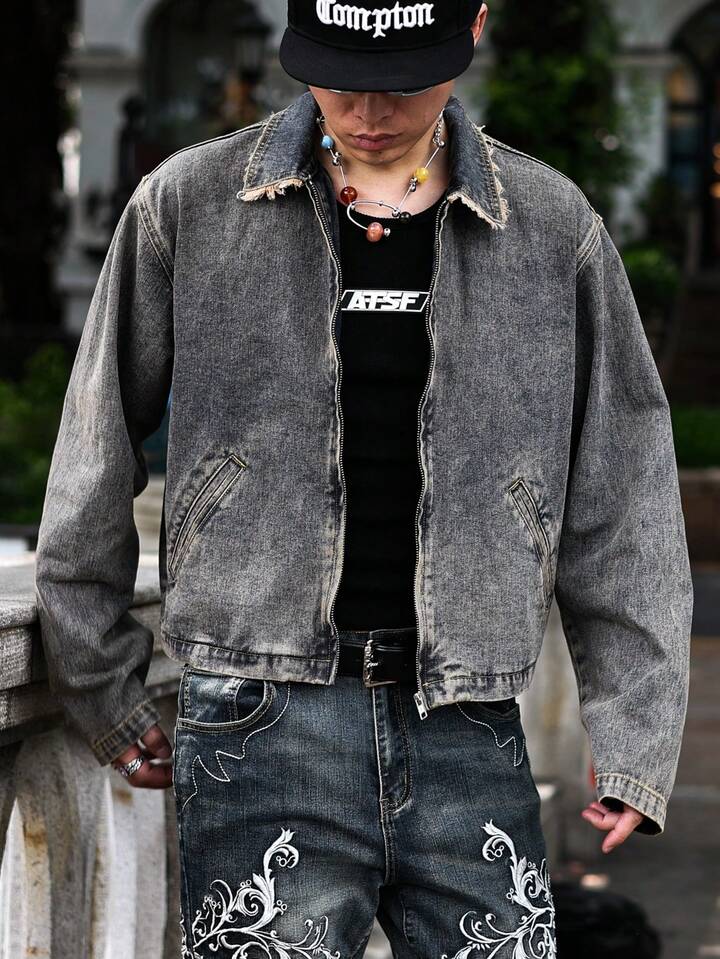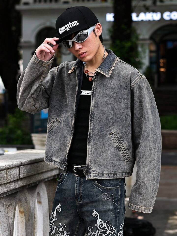 Street Life Chaqueta vaquera con cremallera y bordes sin acabar, de moda casual para hombre, para primavera/otoño