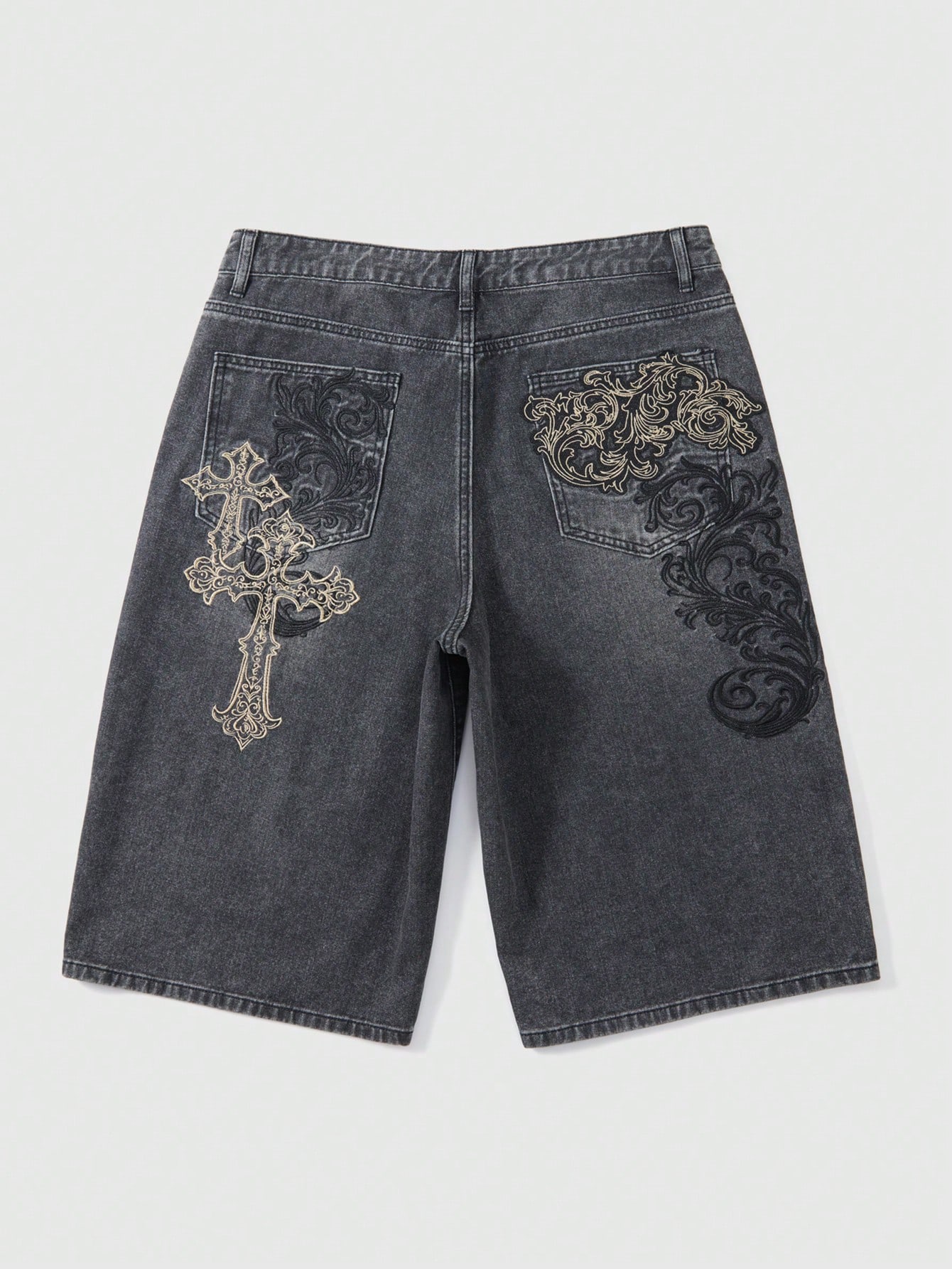 Street Life Jeans de mezclilla lavados con bordados de cruz y flores, estilo casual y de moda para el uso diario y el transporte, para hombres en verano