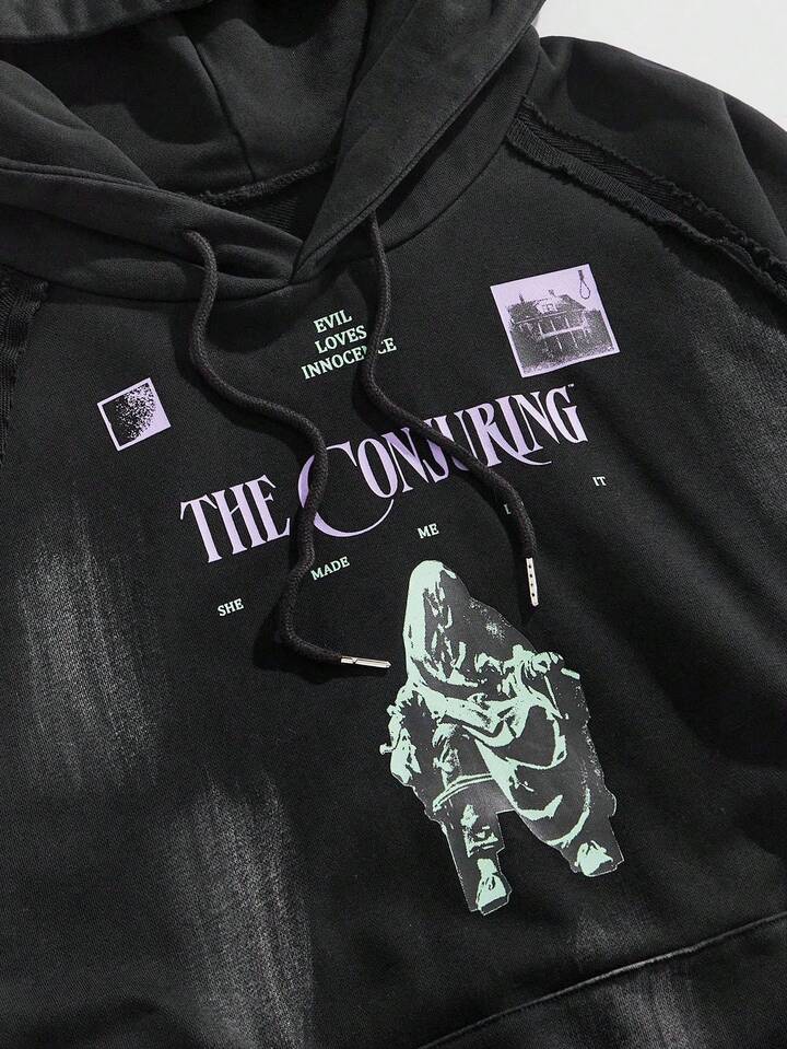 Street Life Sudadera con capucha casual de moda callejera para hombres con estampado de escultura y letras, con cordón en el bolsillo, otoño