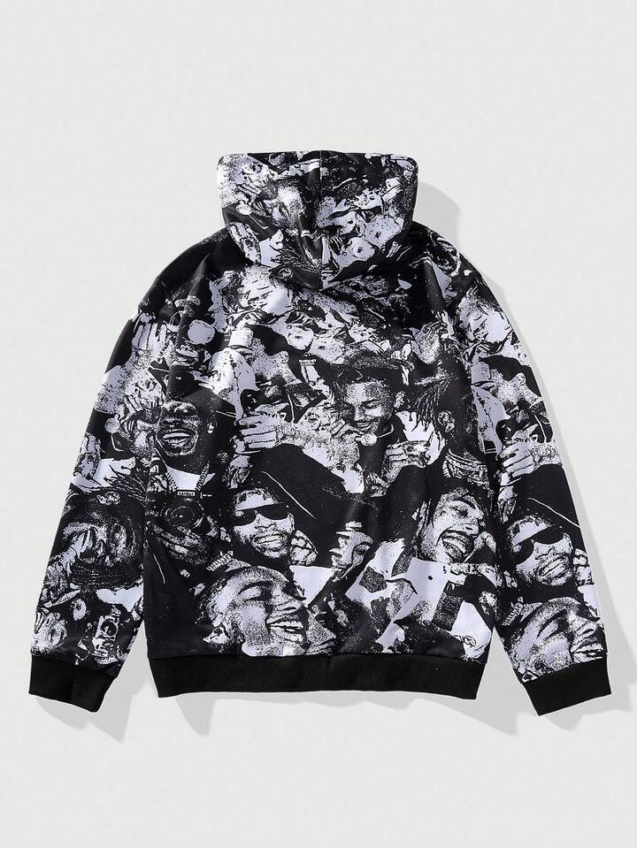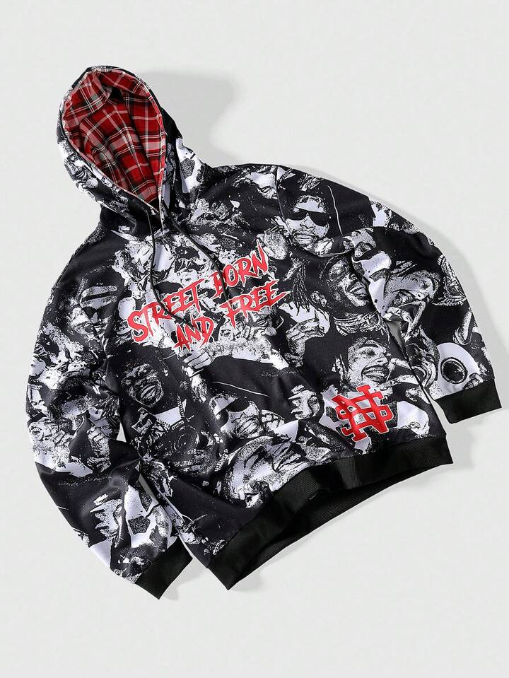 Street Life Sudadera casual y de moda para hombre con estampado de letras y gráficos a todo color, cordón, para primavera/otoño
