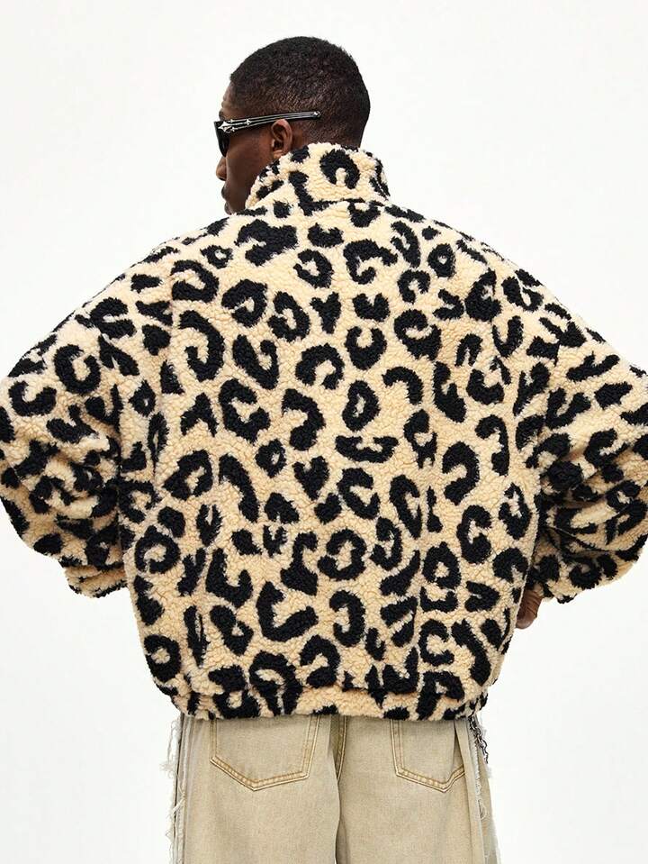 Street Life Chaqueta casual de felpa con estampado de leopardo para hombre, otoño/invierno
