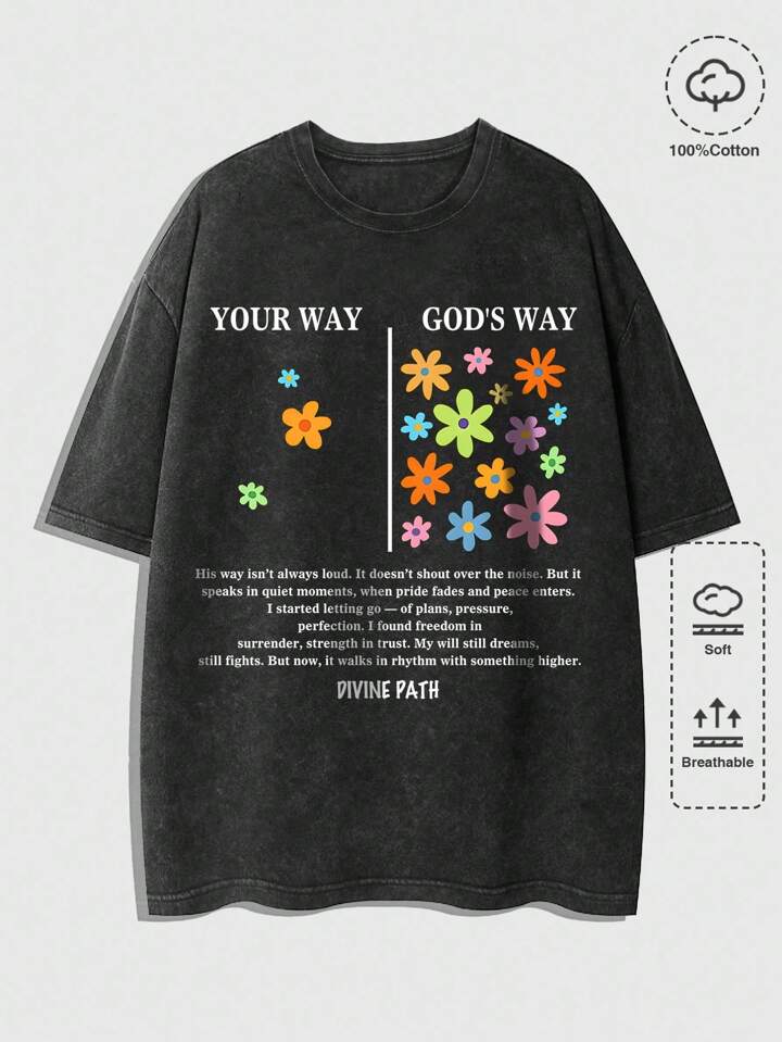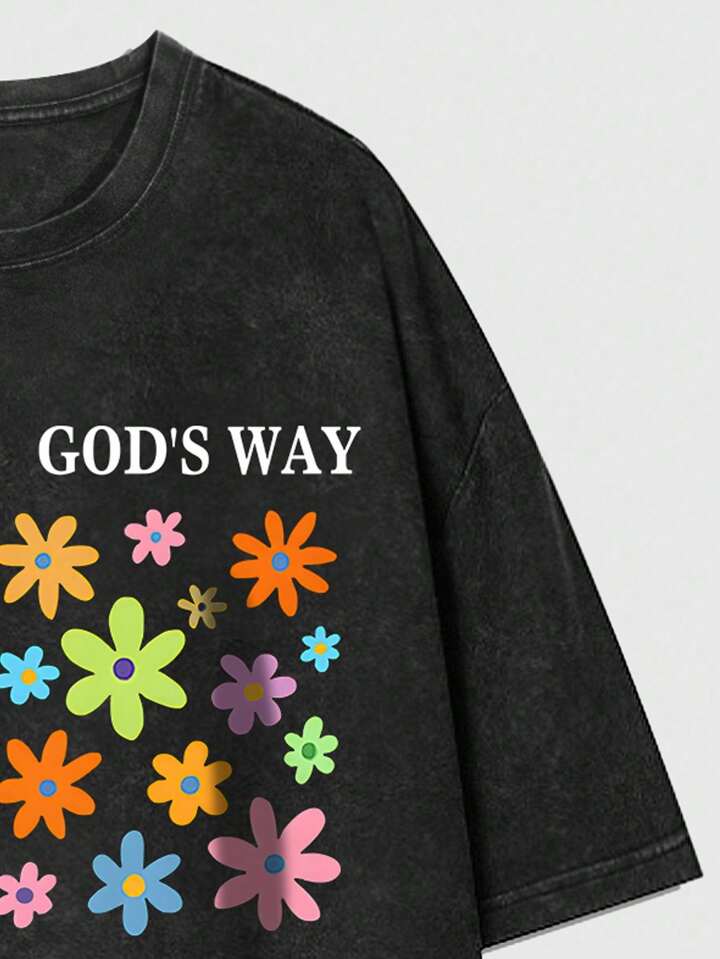 Street Life Camiseta de manga corta de cuello redondo con estampado floral y eslogan casual para hombre, de verano