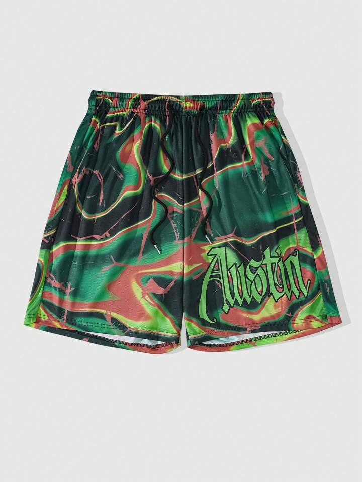 Street Life Shorts informales con estampado de letras y lazada frontal para hombres