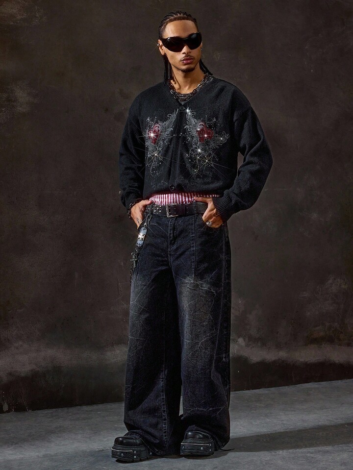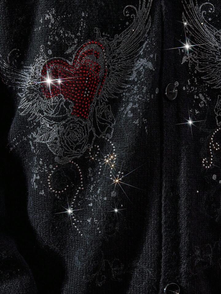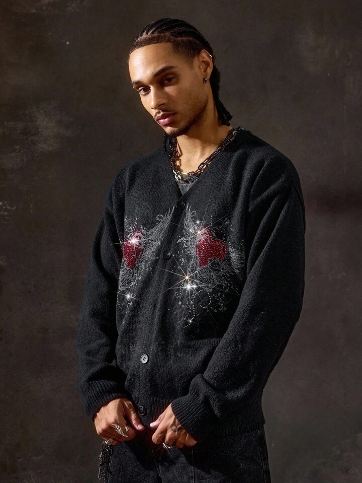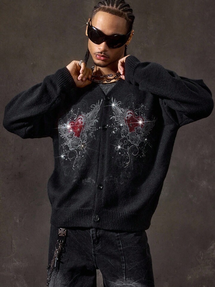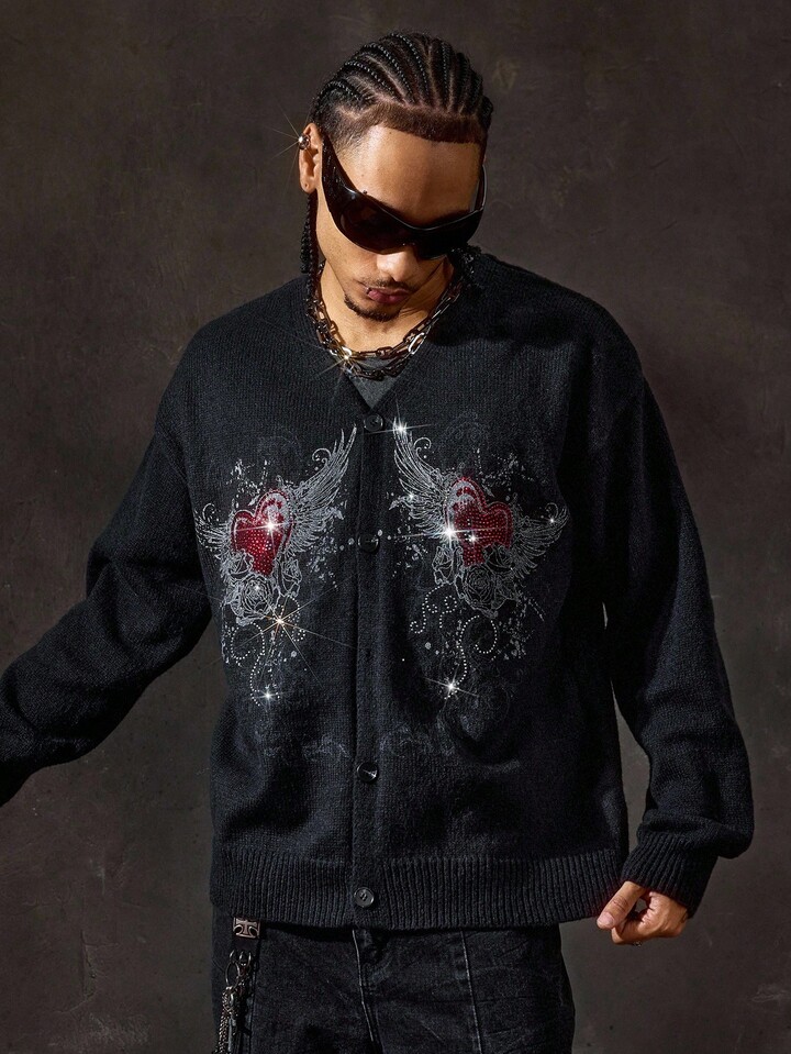 Street Life Chaqueta con capucha con cremallera de estilo casual con patrón de corazón y alas para hombre, otoño