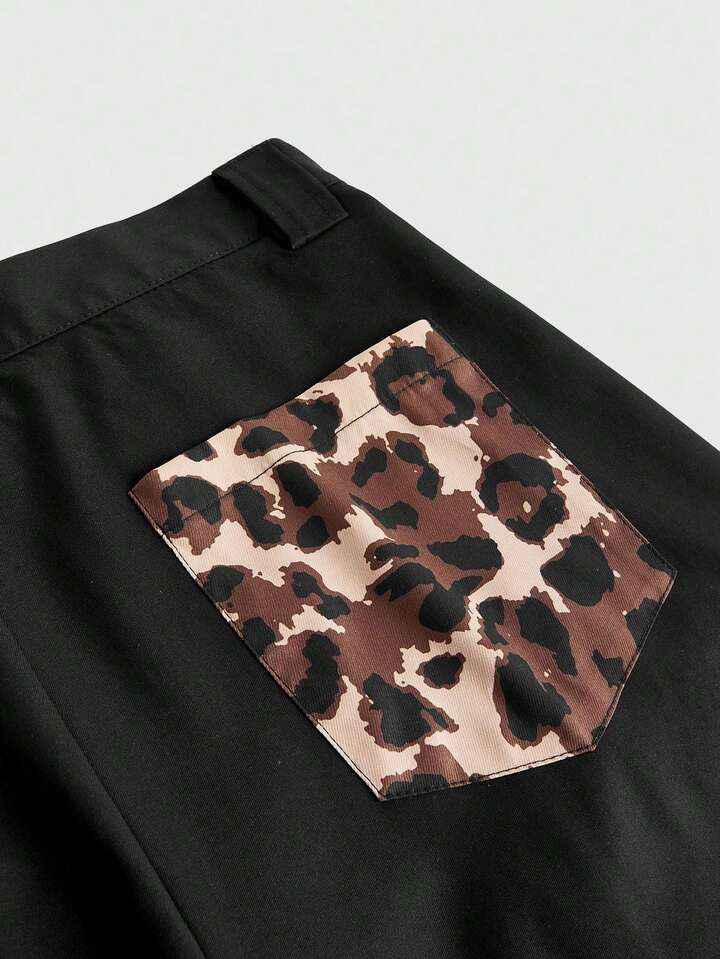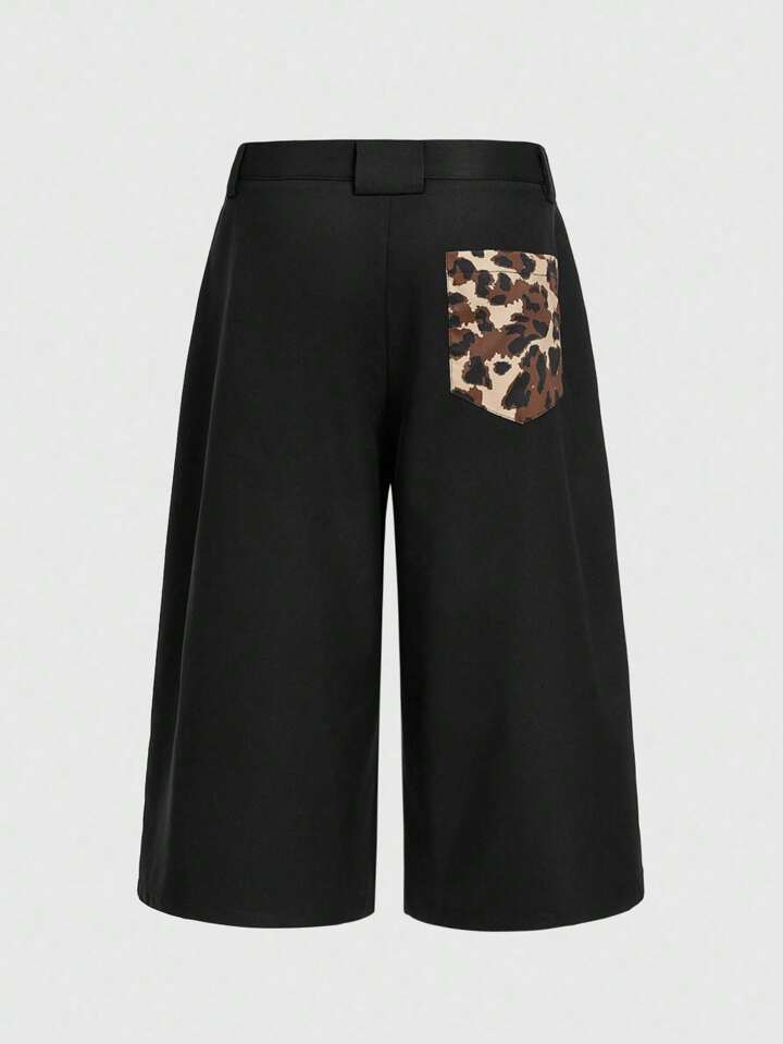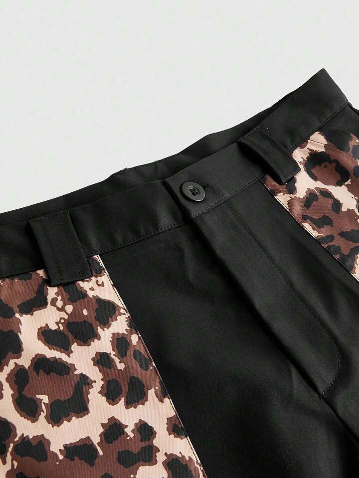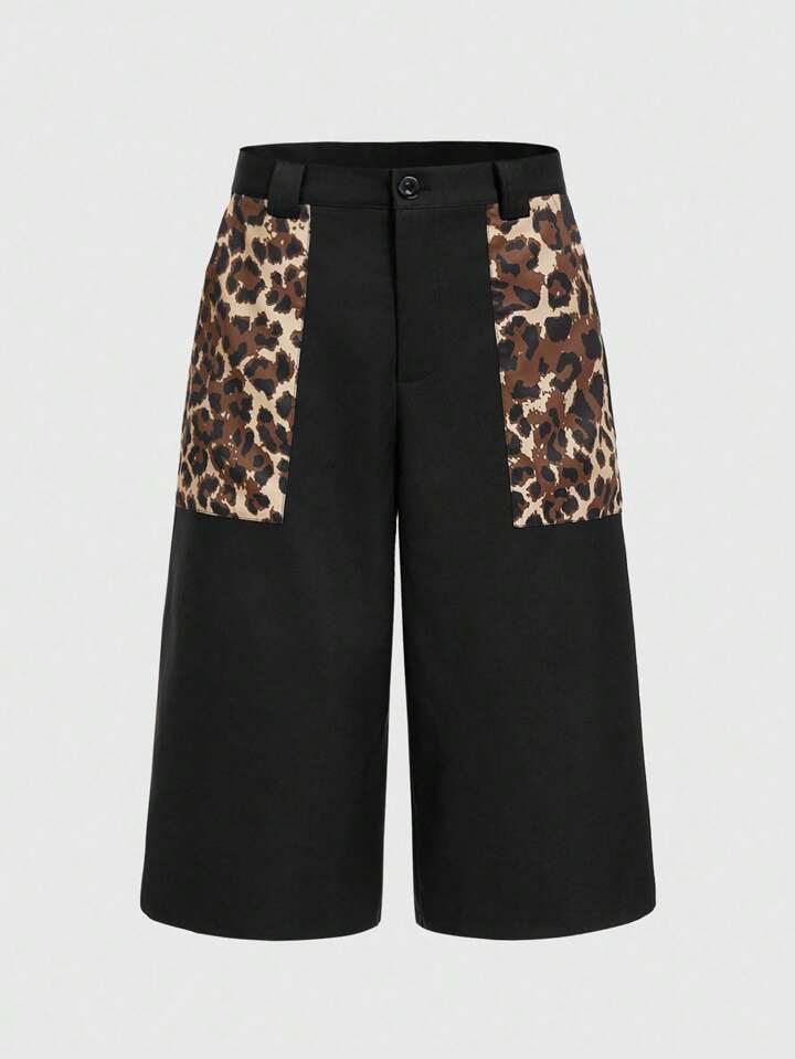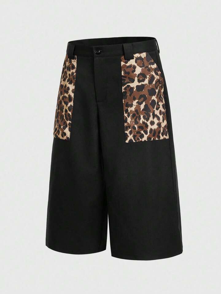 Street Life Pantalones capri anchos casuales de hombre con parches de estampado de leopardo