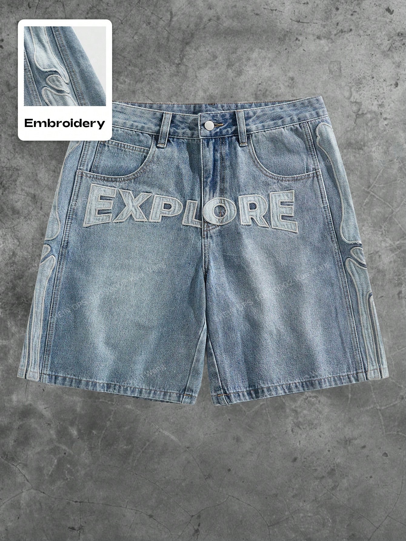 Street Life Shorts de mezclilla casuales de verano para hombres con bordado de letras