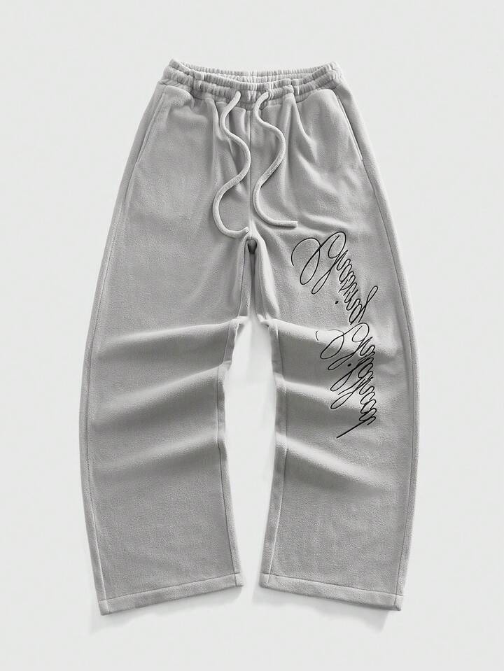 Street Life Pantalones de chándal rectos con bordado de letras casuales para hombres, otoño/invierno
