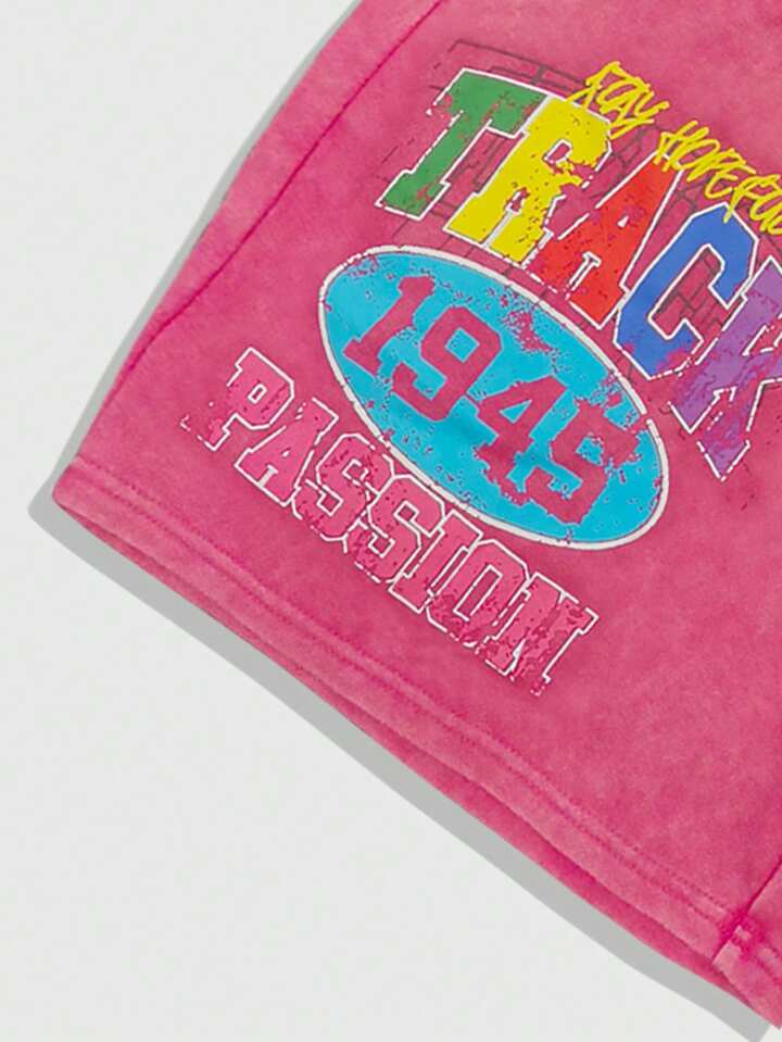 Street Life Pantalones cortos casuales de hombre con estampado de letras, cintura con cordón y bolsillos