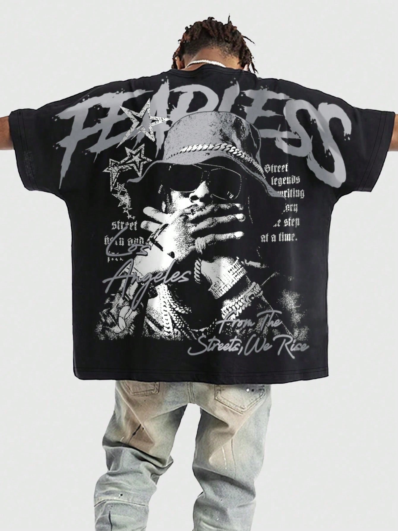 Street Life Camiseta gráfica de verano de corte holgado y casual con letras y retratos para hombre