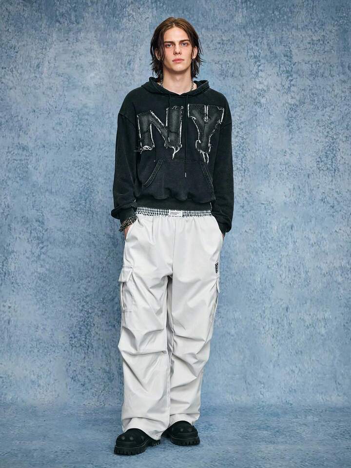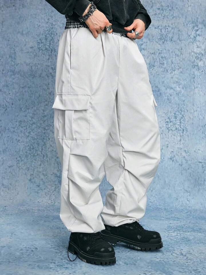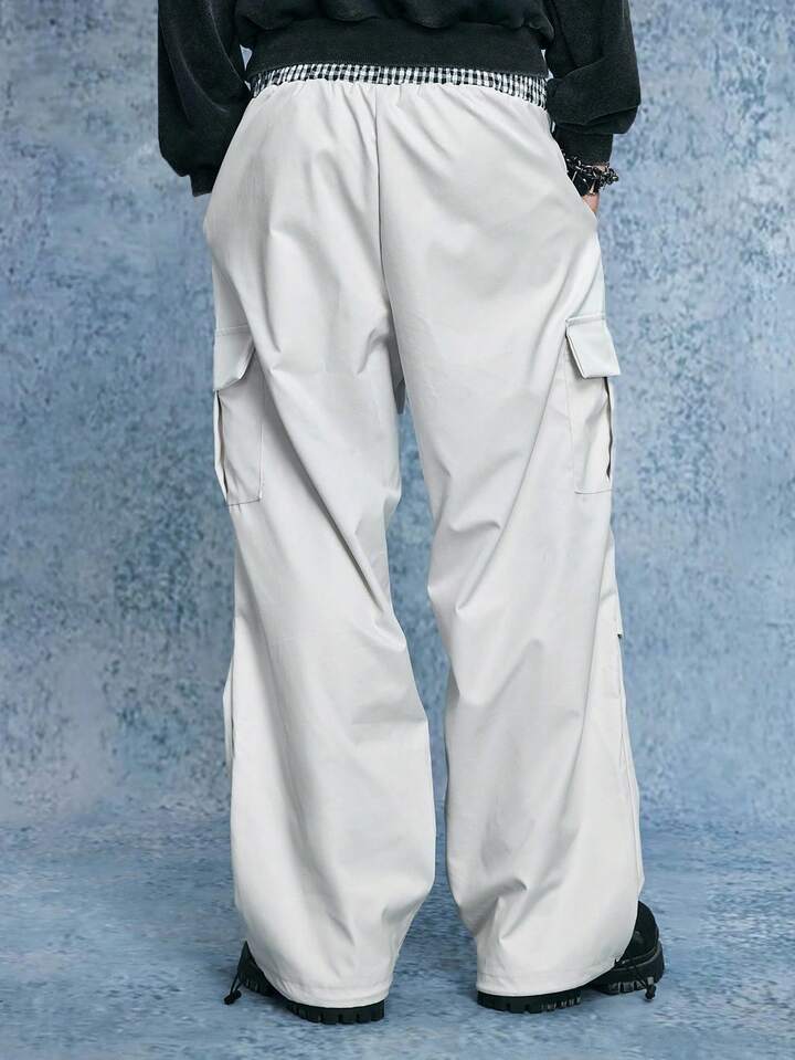 Street Life Pantalones holgados de cuadros y parches casuales para hombre, otoño