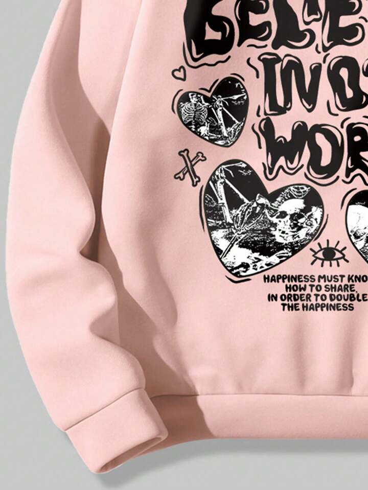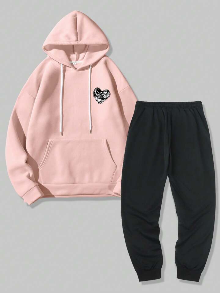 Street Life Conjunto Para Hombre De Sudadera Rosa Informal Con Estampado De Letras Y Pantalones Deportivos