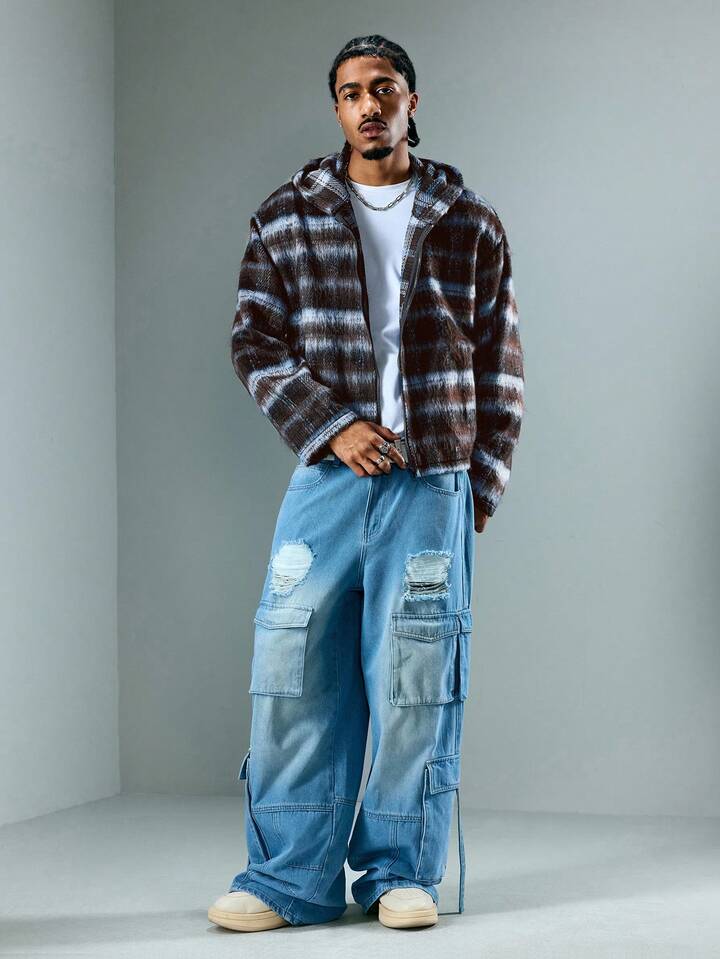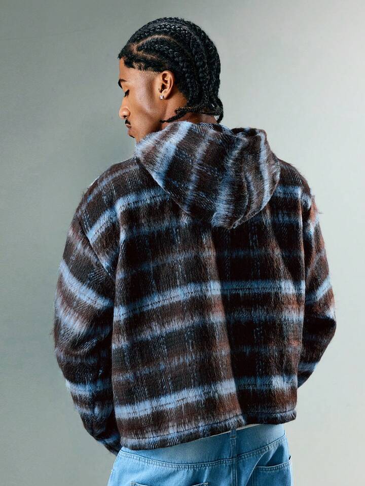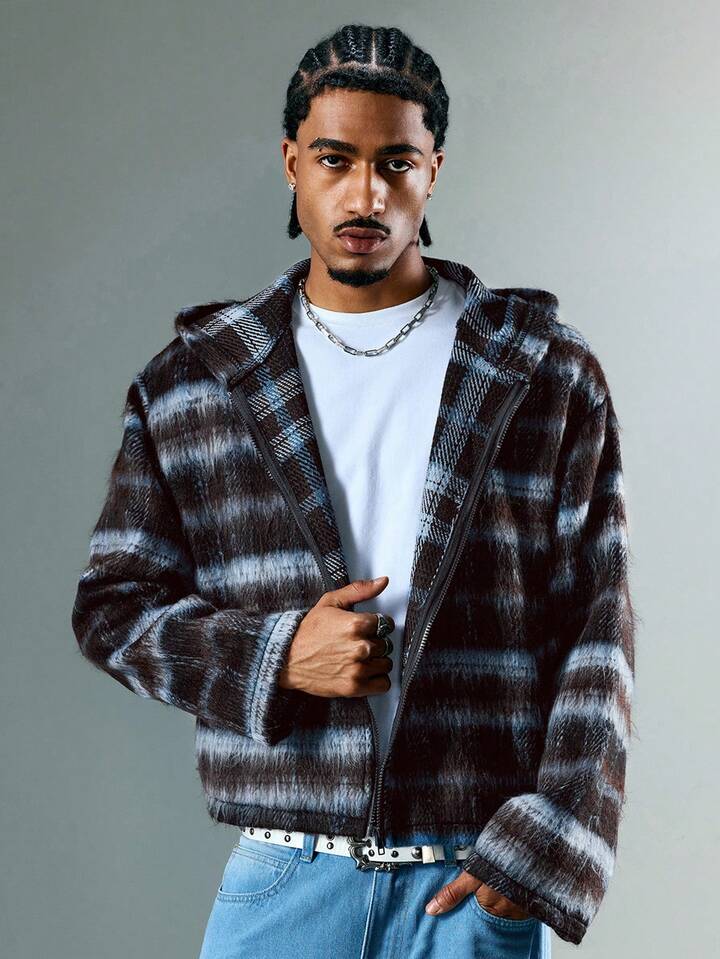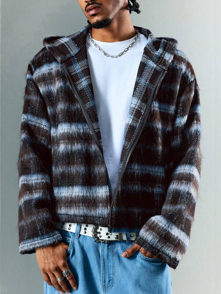 Street Life Cárdigan con capucha a cuadros casual para hombre, moda urbana, otoño/invierno