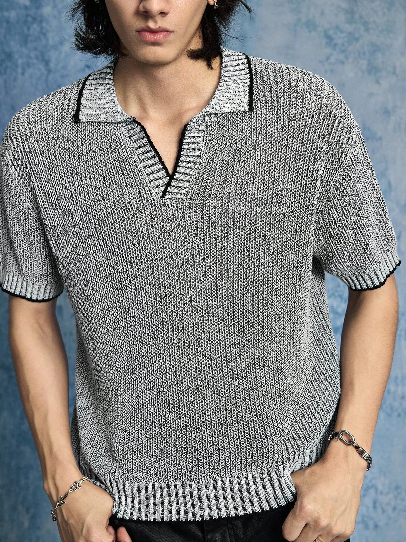 Street Life Polo casual de manga corta con cuello y ribete de contraste para hombre, verano