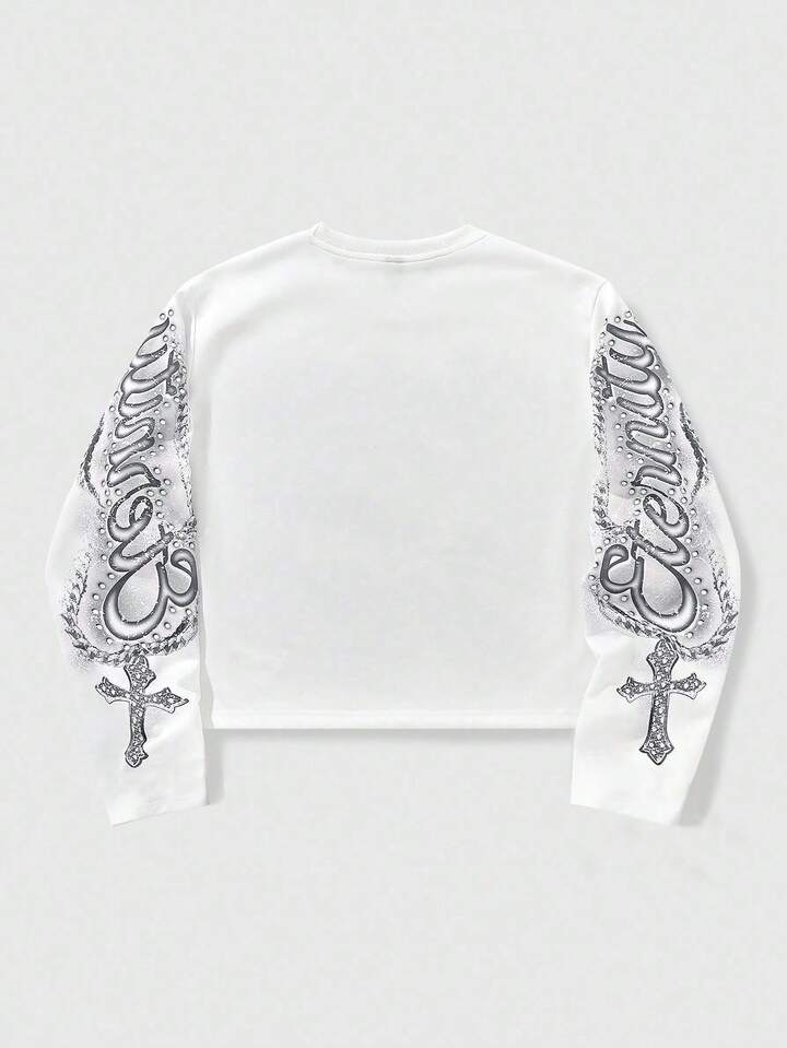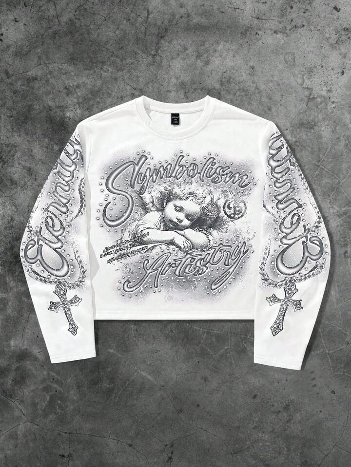 Street Life Camiseta de manga larga con cuello redondo y estampado casual para hombre