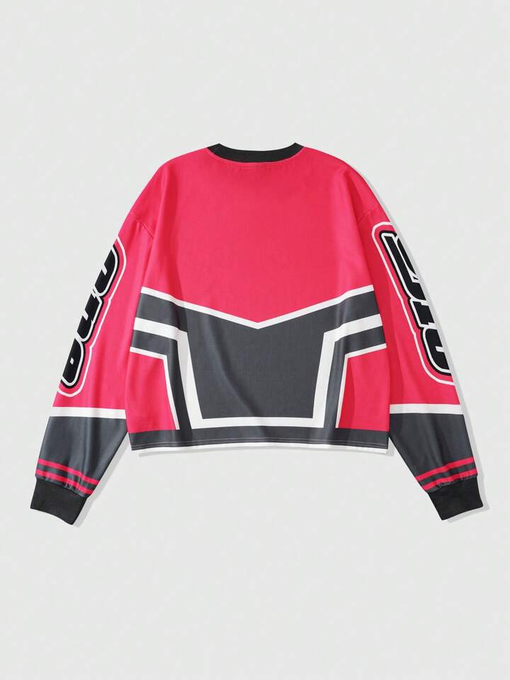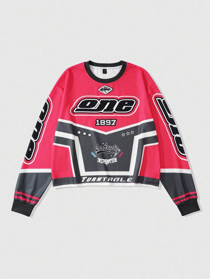 Street Life Camiseta de manga larga con cuello redondo y estampado de letras, estilo callejero retro