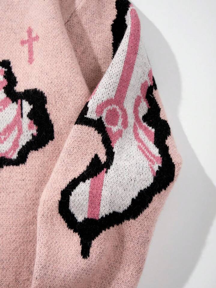 Street Life Suéter casual de hombre con cremallera, estampado de esqueleto y cruz, de hombros caídos y ajuste holgado, para Halloween