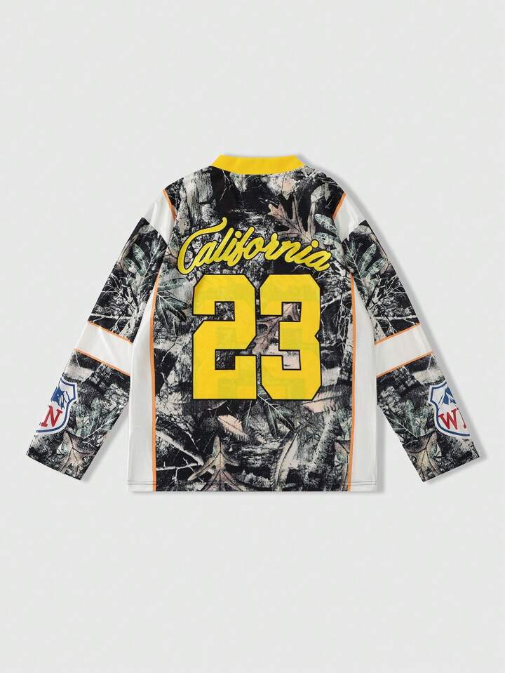 Street Life Camiseta de manga larga con estampado gráfico casual de calle para hombres, primavera/otoño
