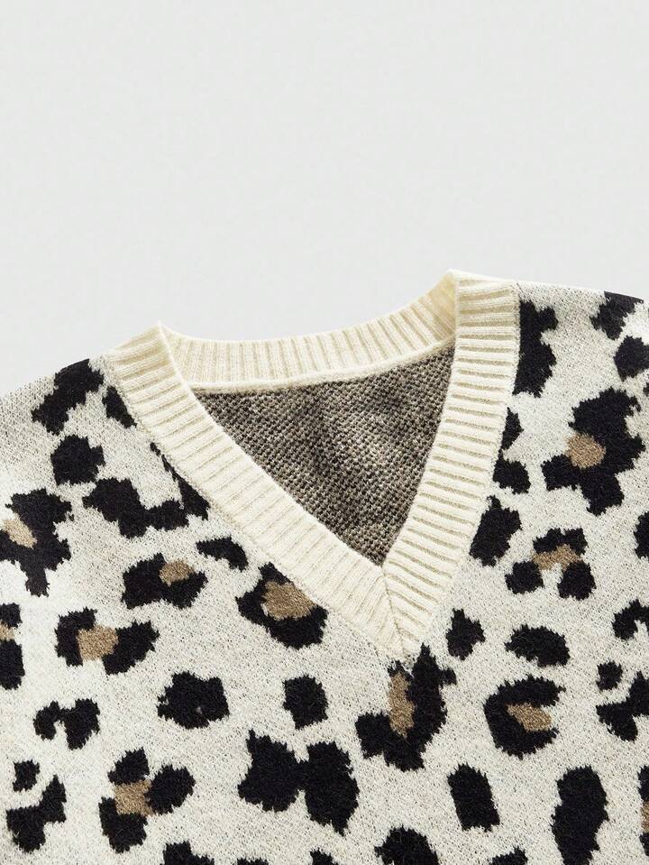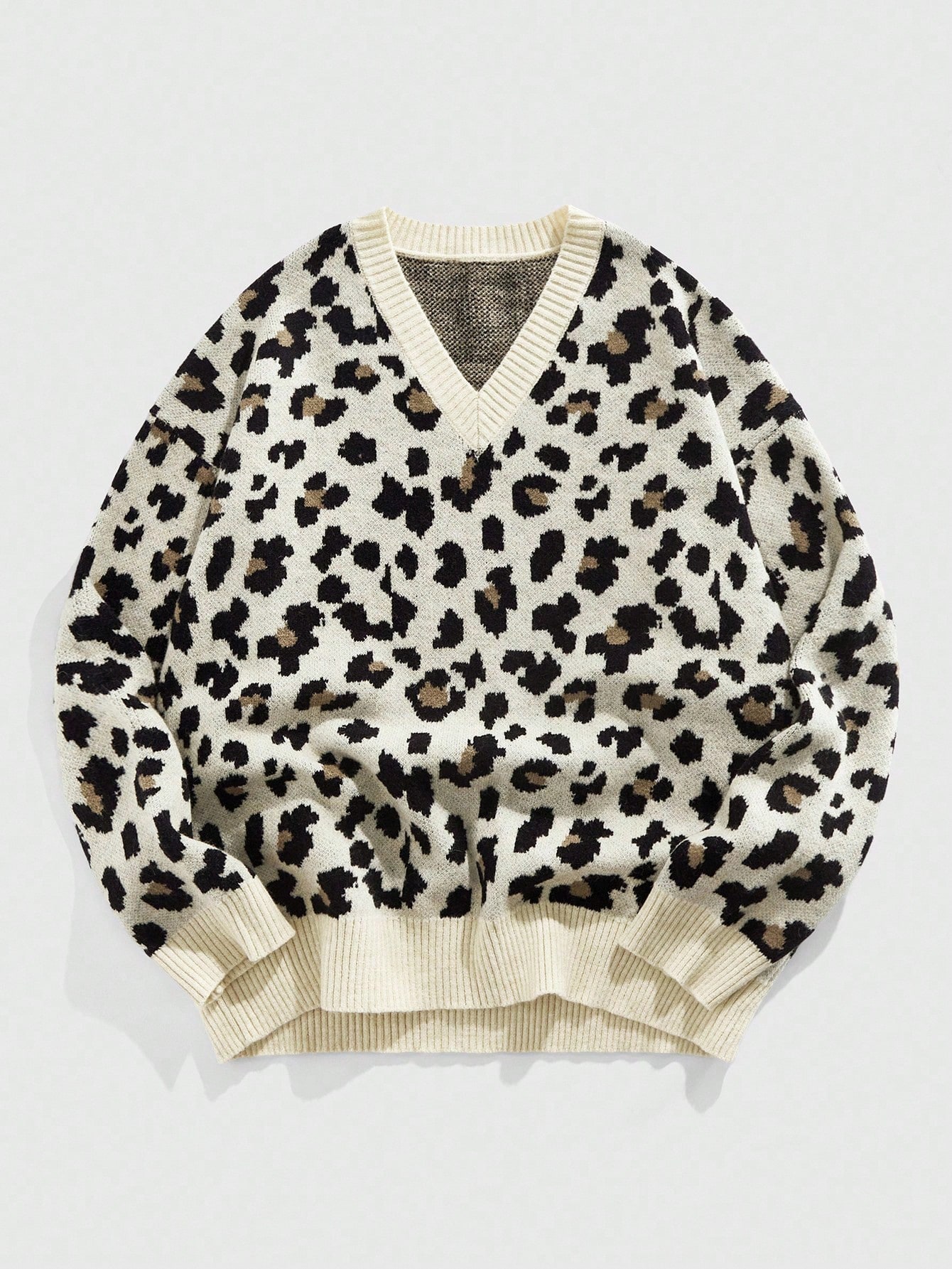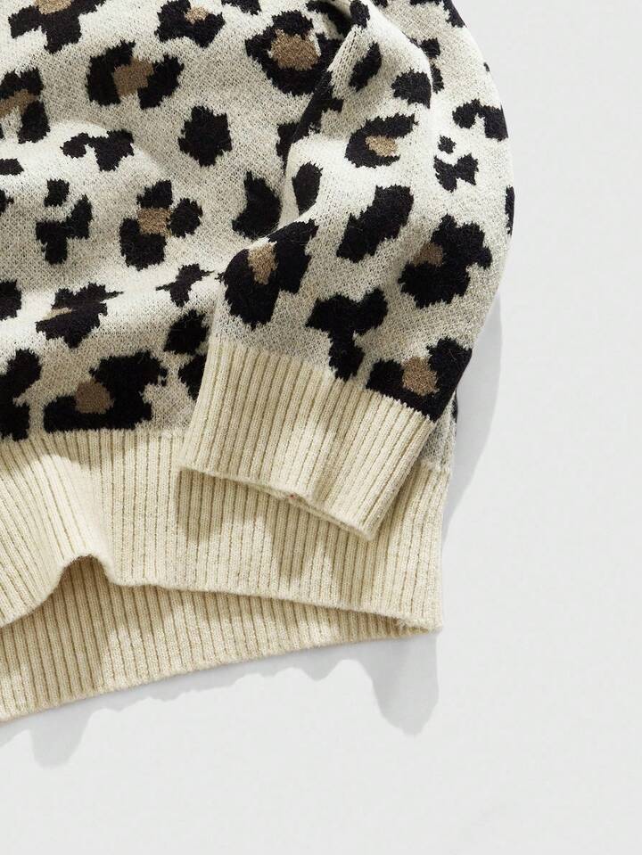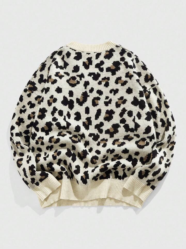 Street Life Jersey de cuello en V casual de manga larga con estampado de leopardo para hombre, otoño e invierno