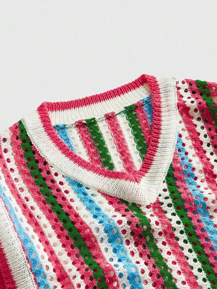 Street Life Camiseta de tirantes holgada de punto a rayas, moda casual de vacaciones y calle para hombres