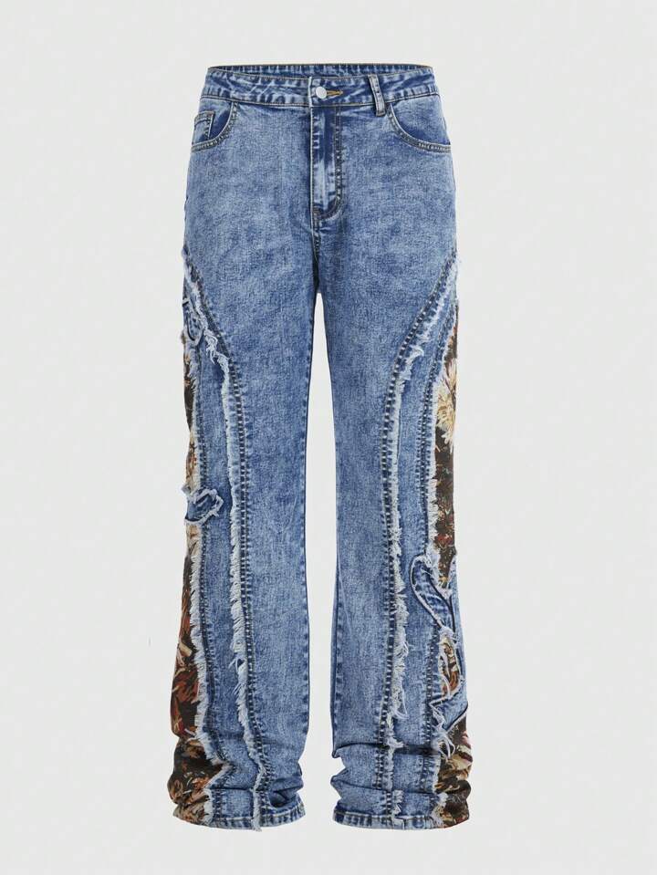 Street Life Jeans vaqueros casuales de hombre con parches de jacquard en estilo vintage