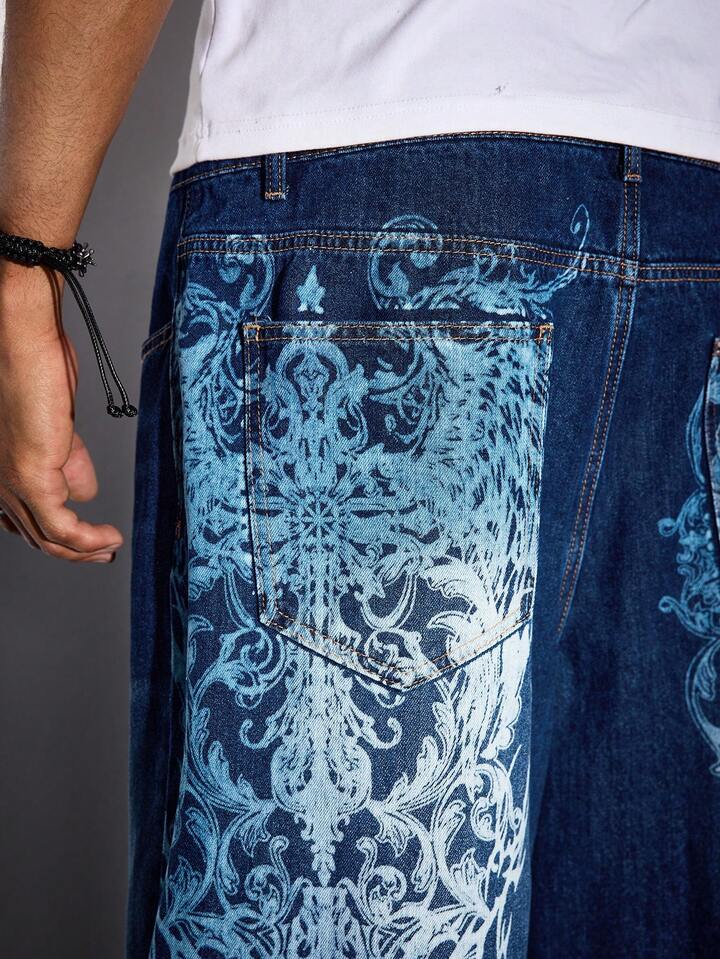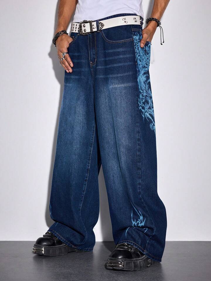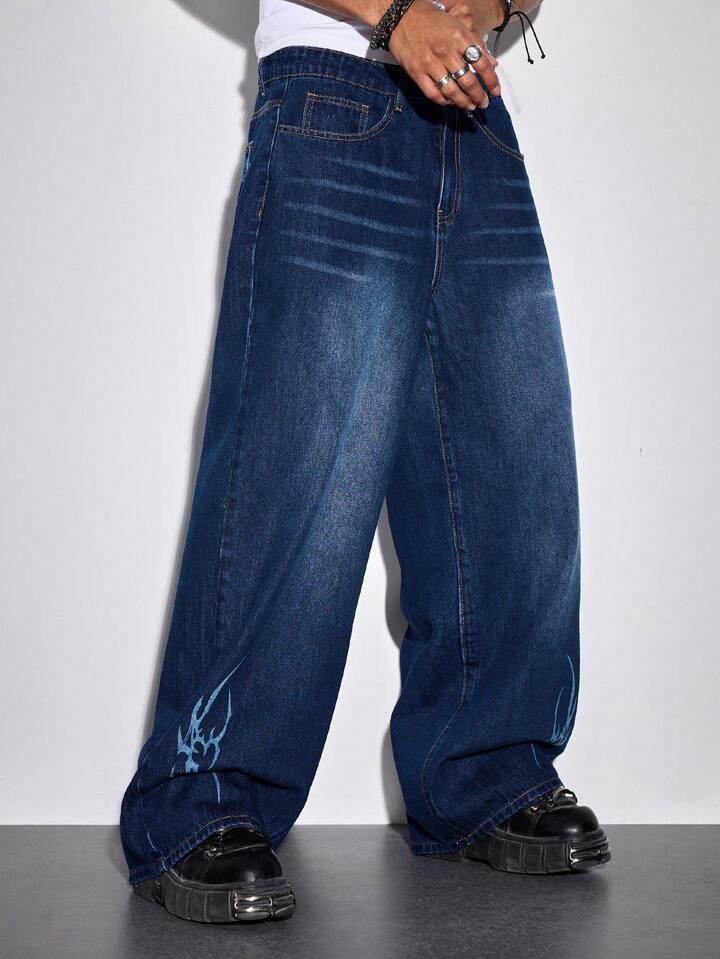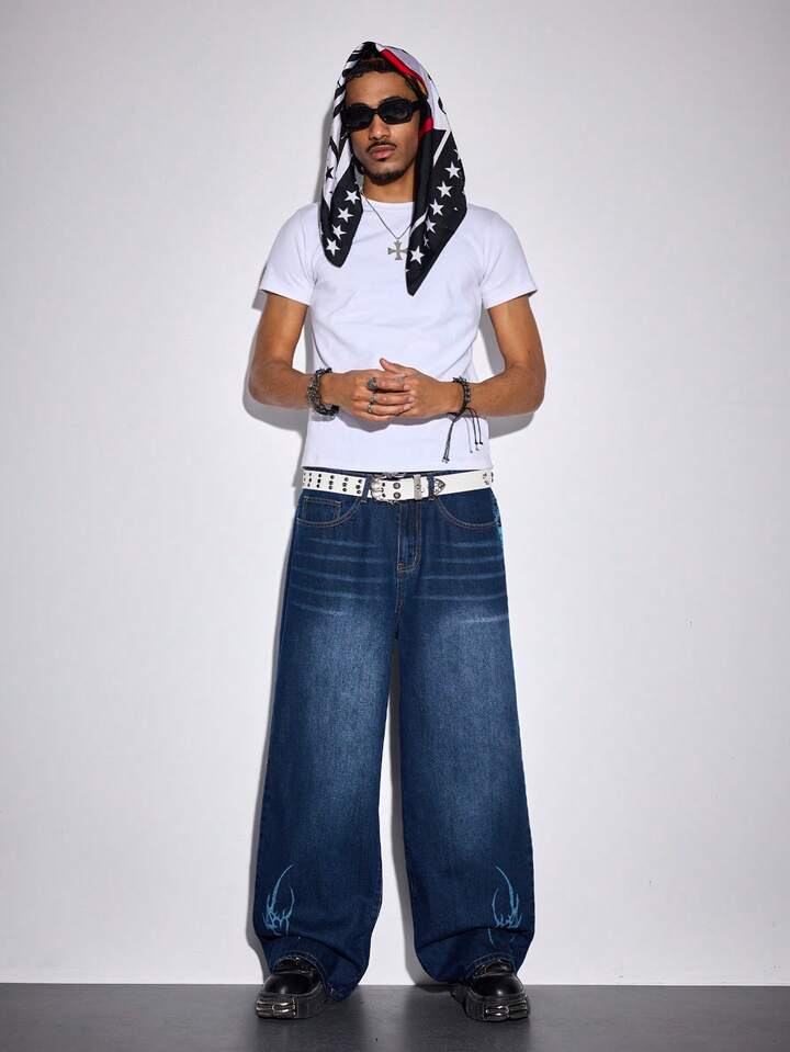 Street Life Jeans de mezclilla casual con estampado de cruz lavado para hombres