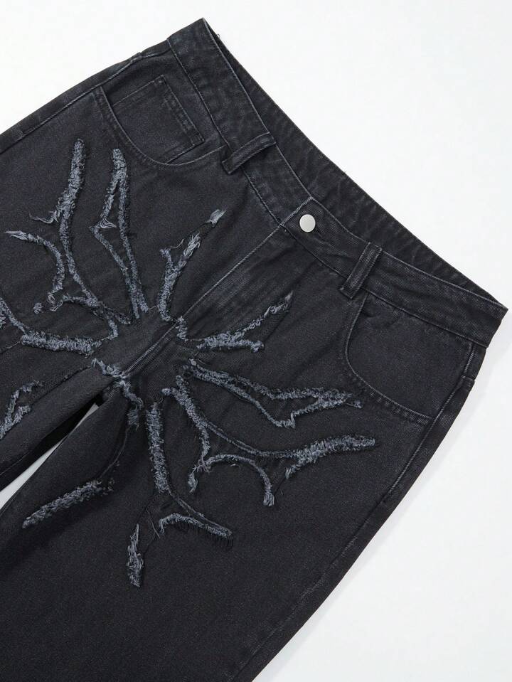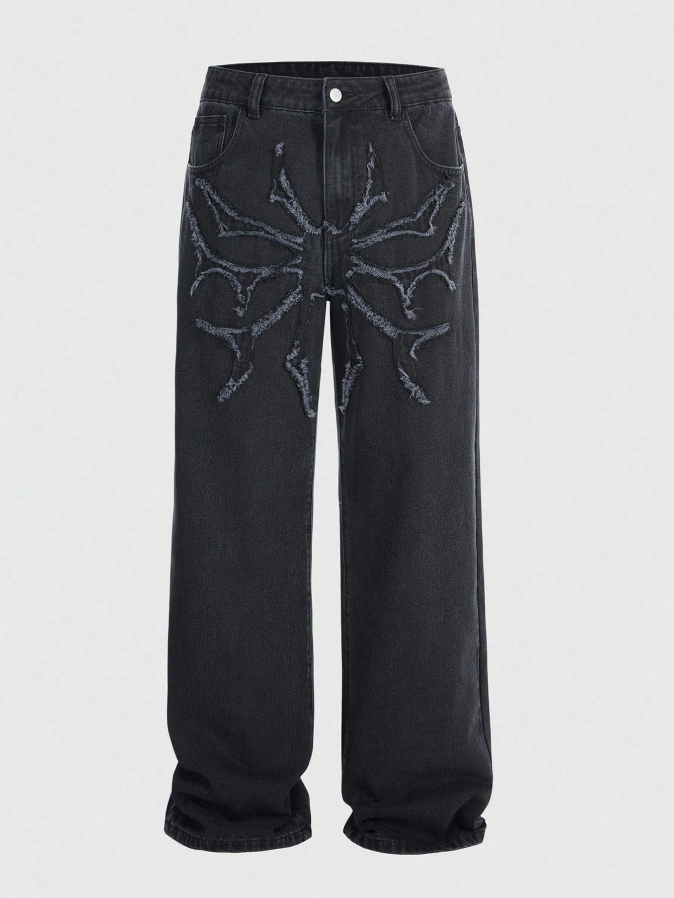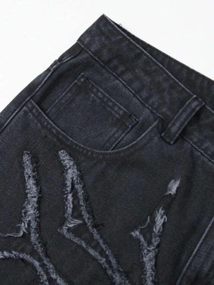 Street Life Jeans rectos de pierna casual lavados y desgastados para hombres