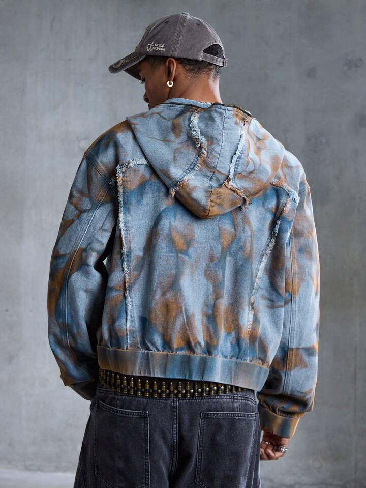 Street Life Chaqueta vaquera con capucha, estampado de teñido anudado, lavado vintage, casual para hombres