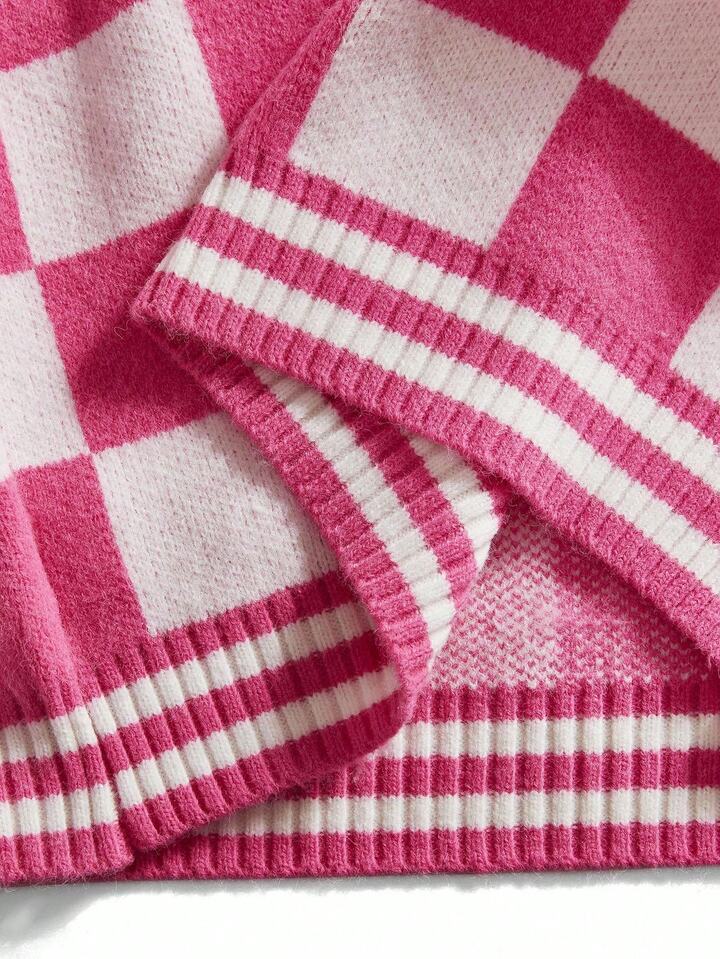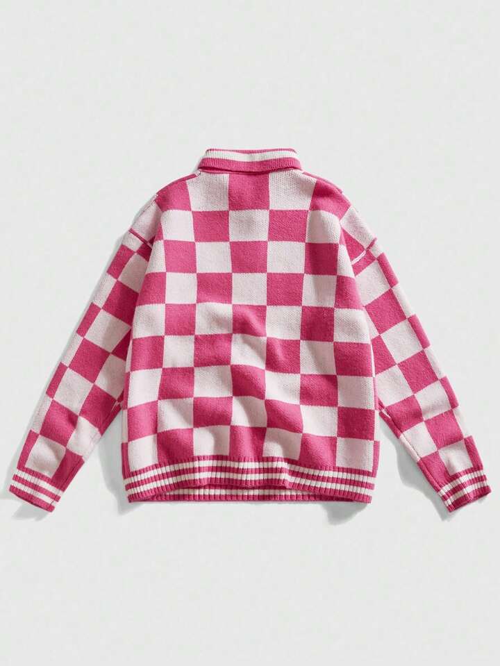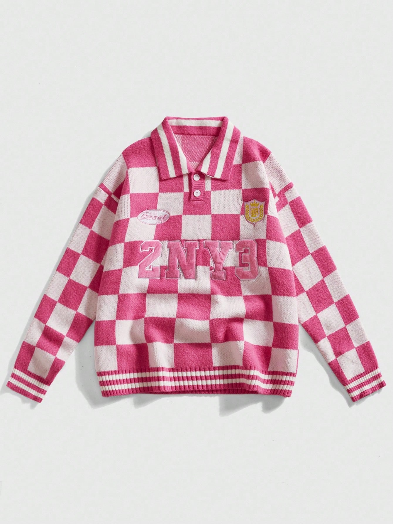 Street Life Suéter de manga larga con patrón de bordado a cuadros para hombre, otoño/invierno