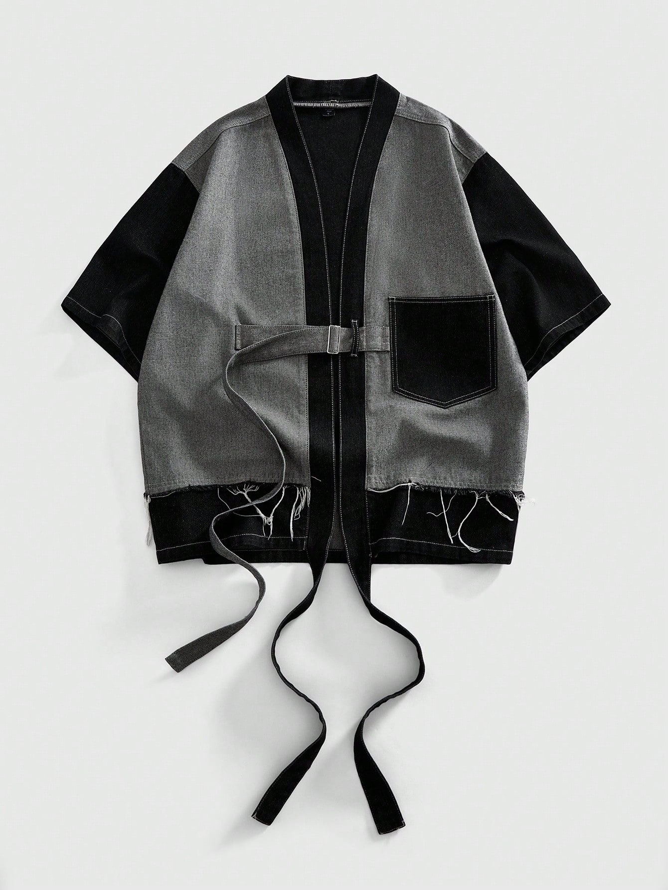 Street Life Camisa de mezclilla con bloques de color para hombre