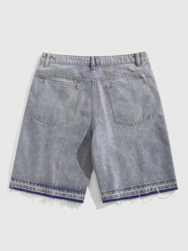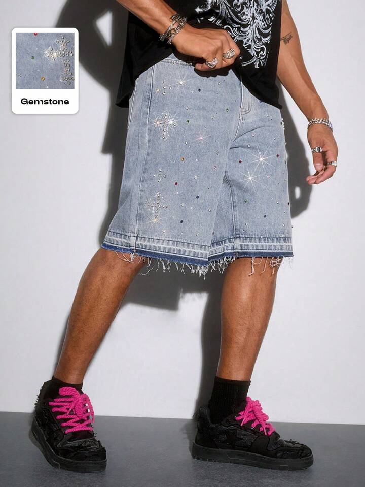 Street Life Pantalones cortos vaqueros informales para hombre con borde deshilachado y decorados con cristales de colores para el verano