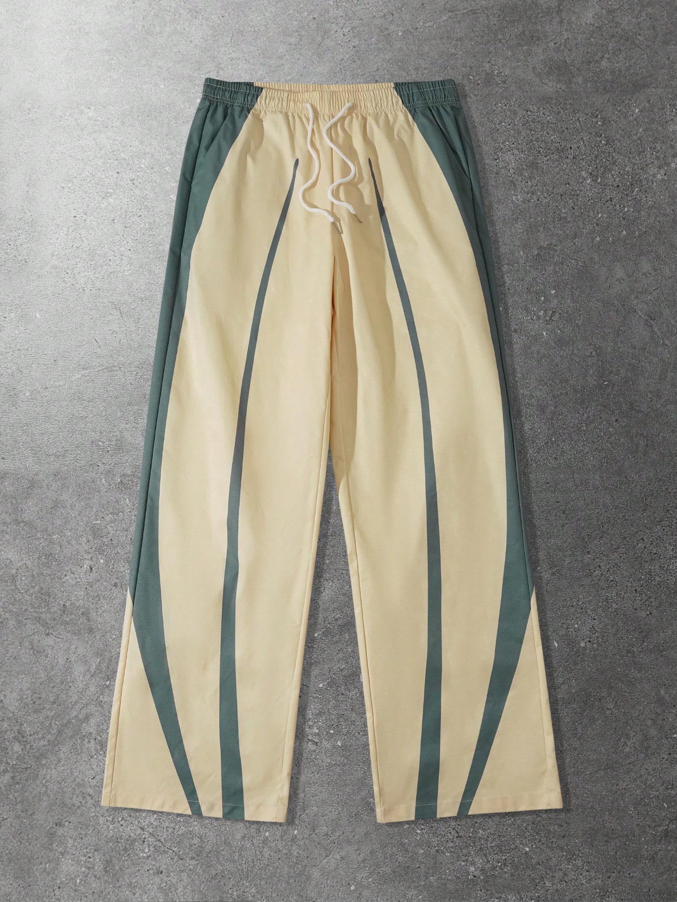 Street Life Pantalones anchos y sueltos para hombres con cintura con cordón, bolsillos y diseño de parches de colores contrastantes