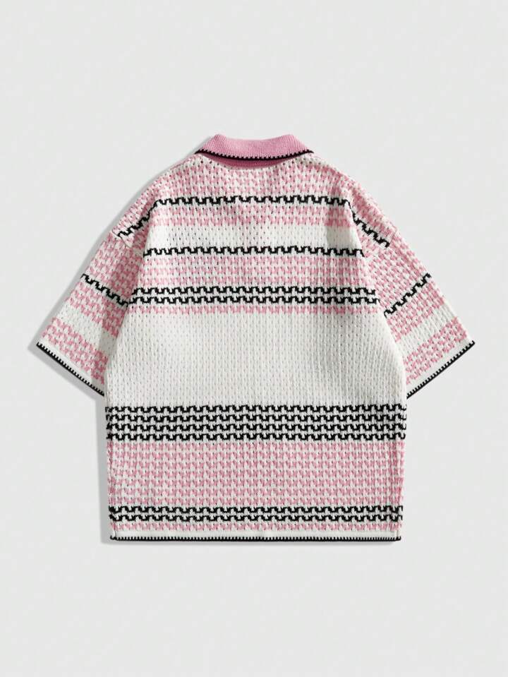 Casual Jersey de punto con rayas y bordado de letras en contraste de colores para hombres