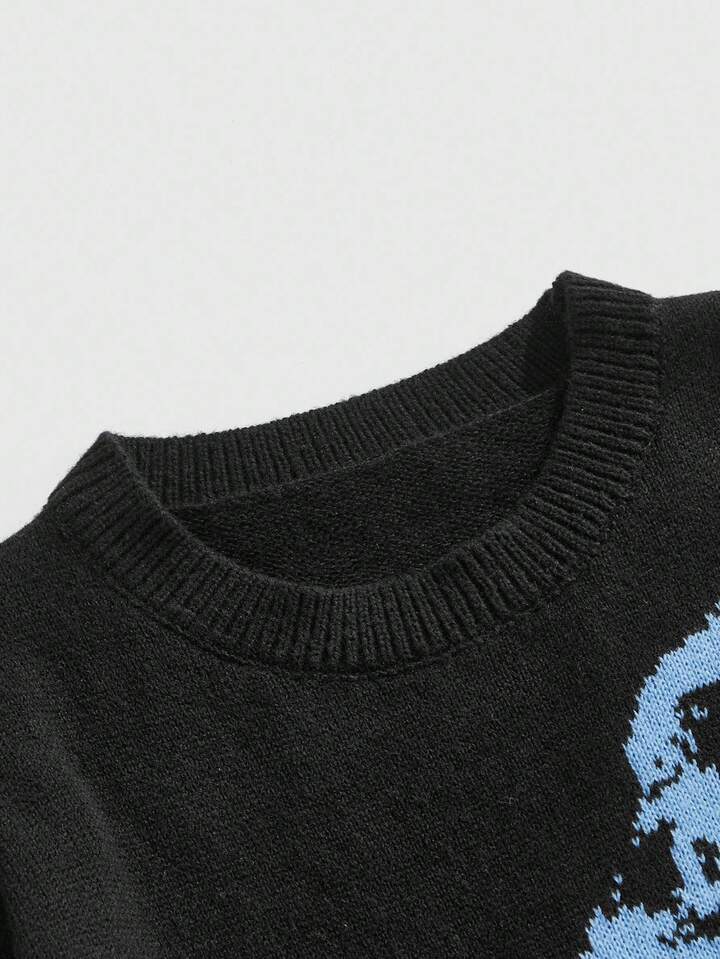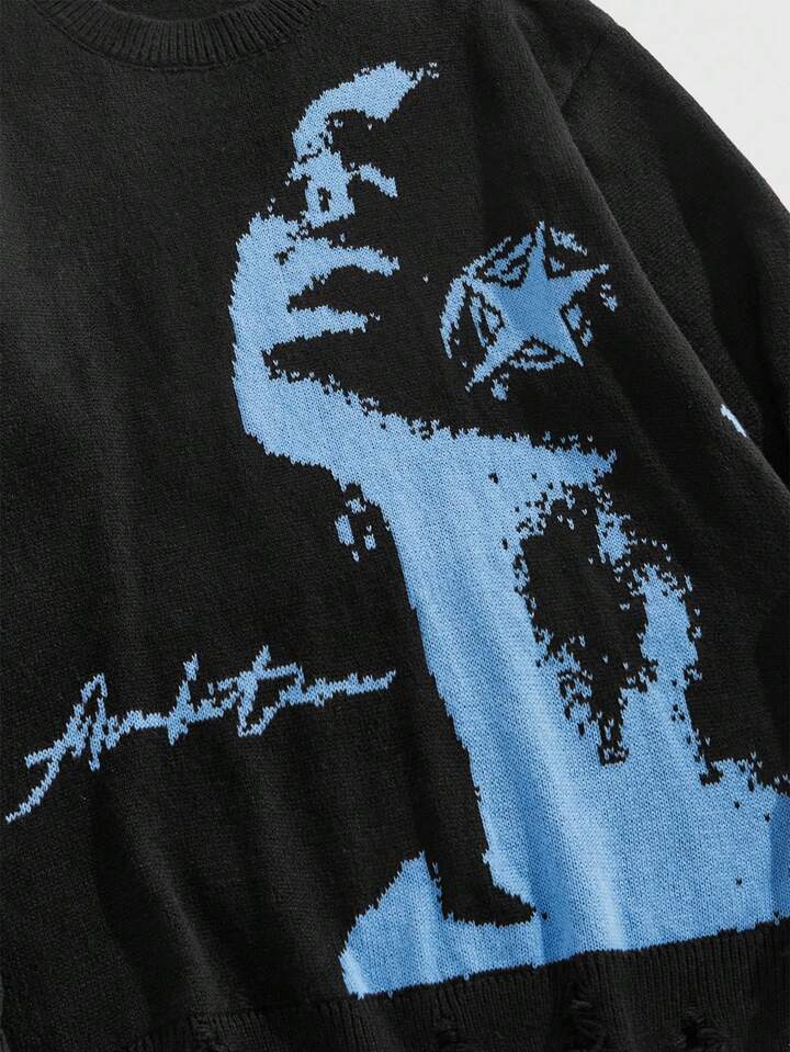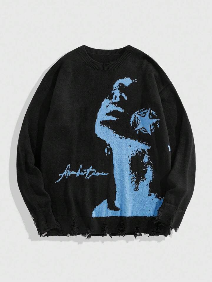 Street Life Jersey con cuello redondo y gráfico de retrato desgastado para hombre, otoño/invierno