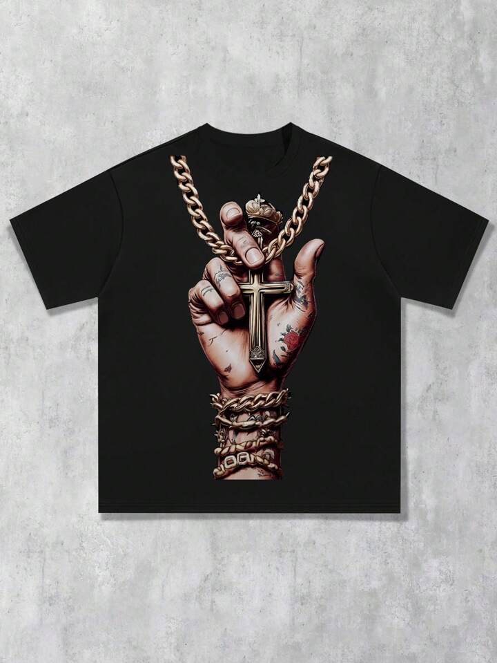 Street Life Camiseta casual de manga corta y cuello redondo con estampado de cruz para hombre, para verano