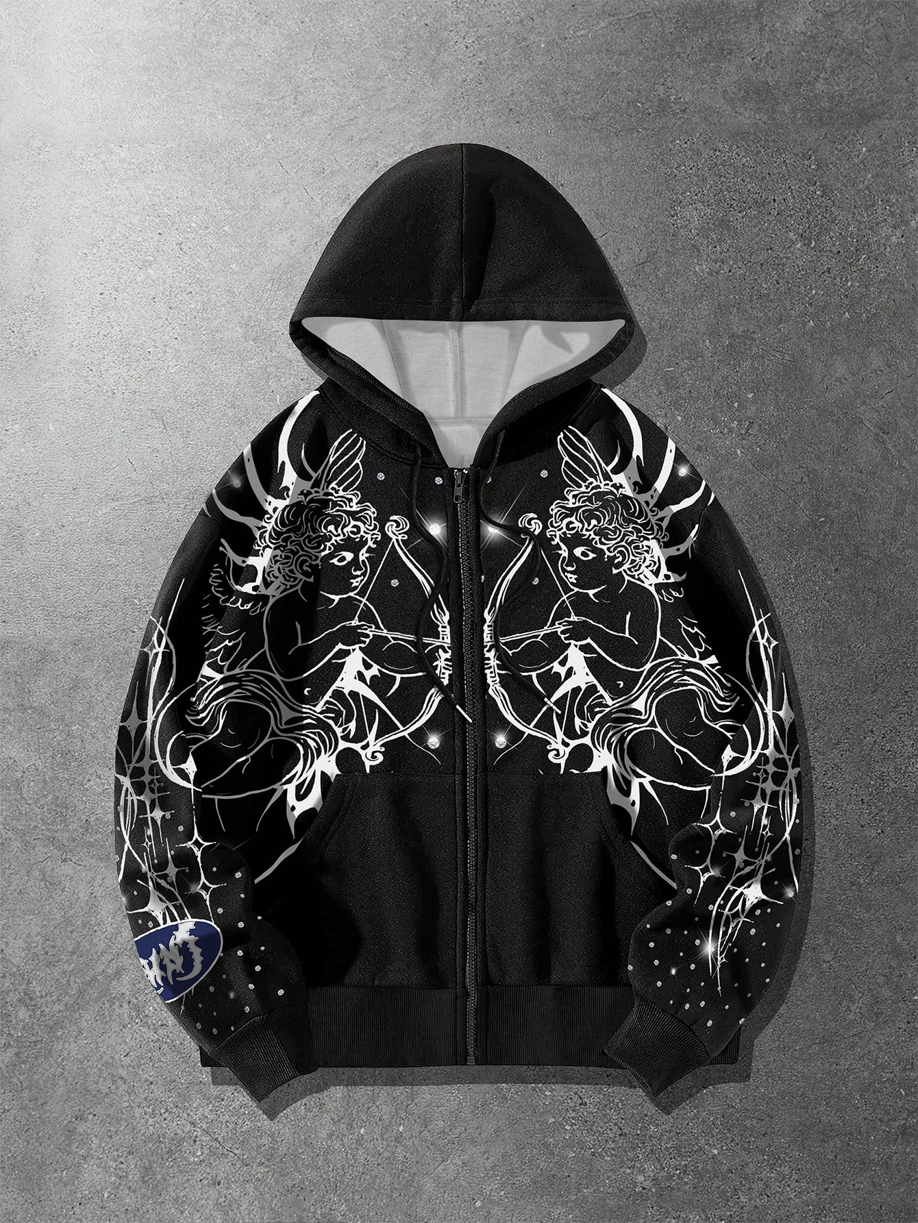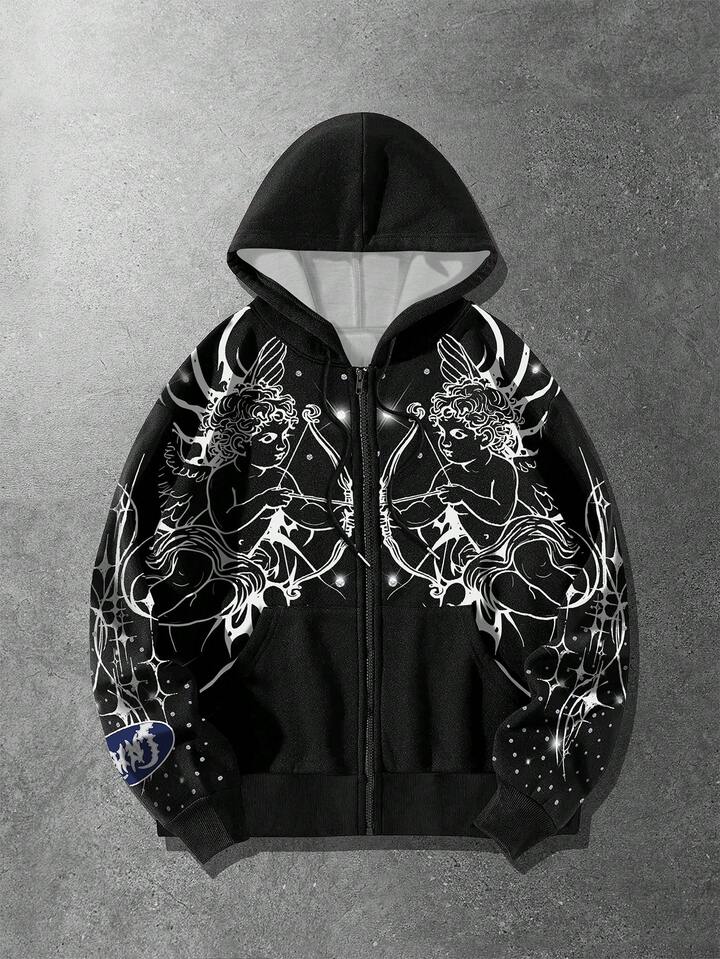 Street Life Sudadera con capucha con cremallera y estampado digital de ángel cupido para hombres