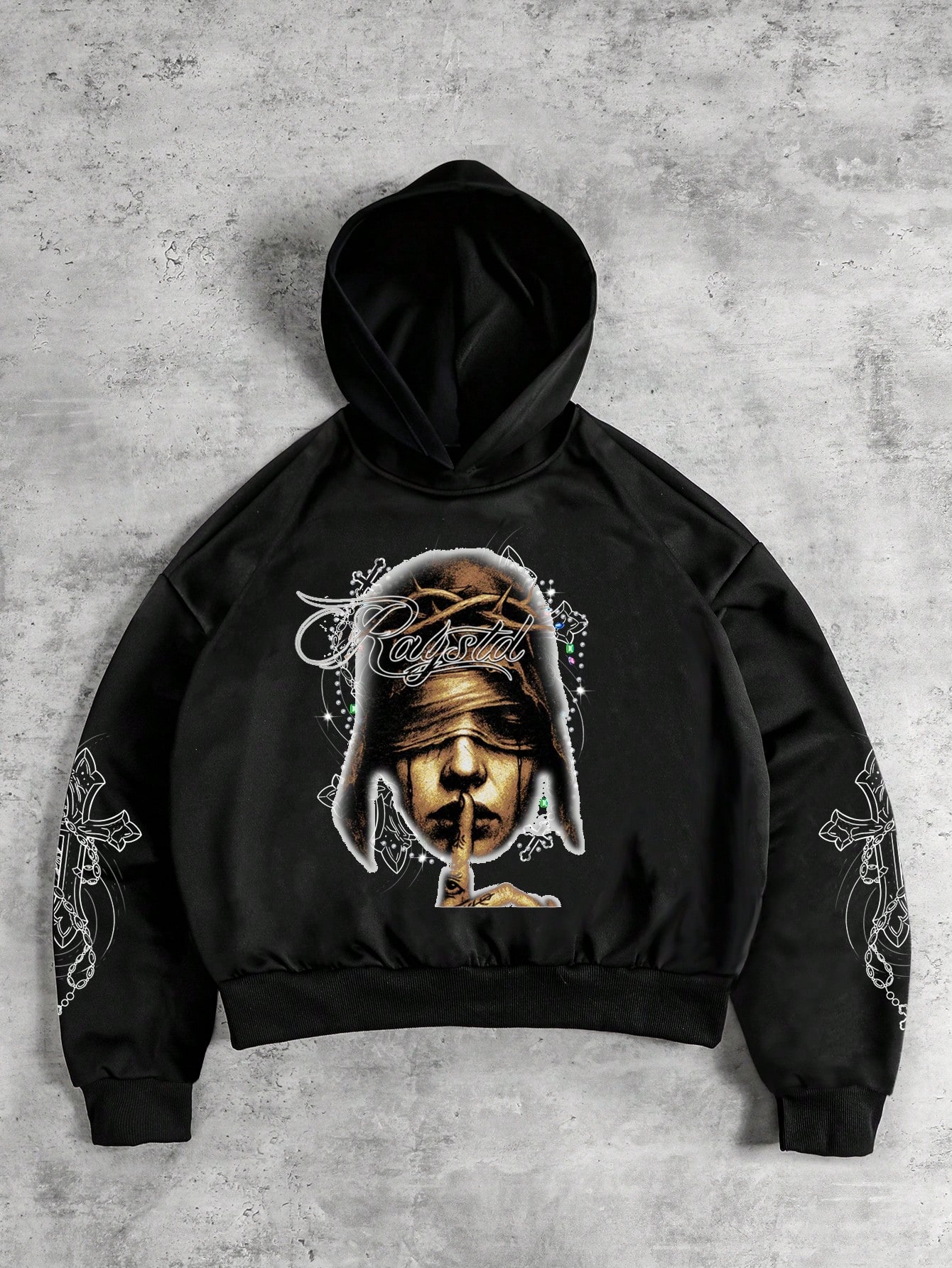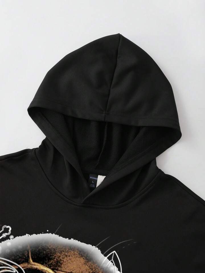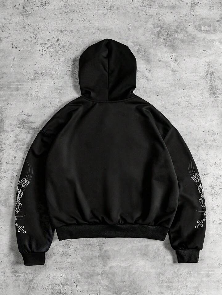 Street Life Sudadera con capucha casual para hombre con estampado de cruz y letras oscuras de calle