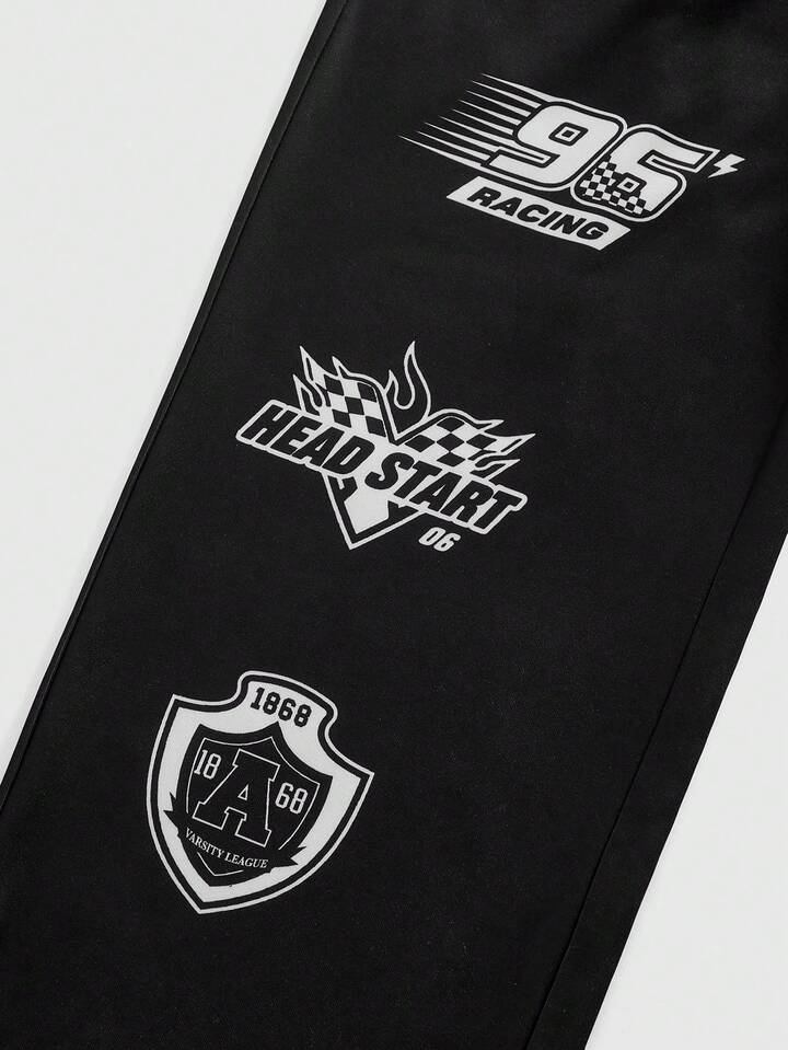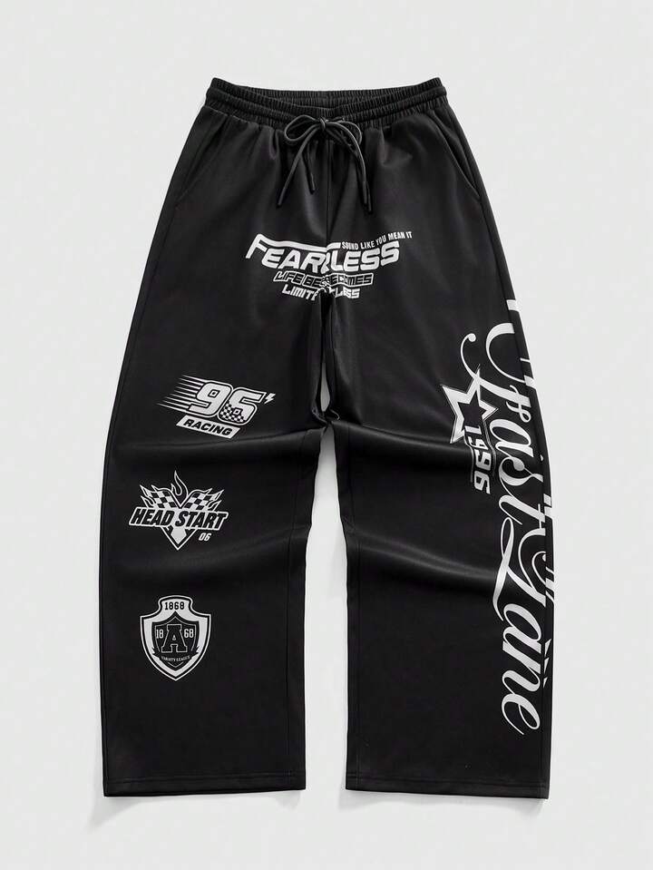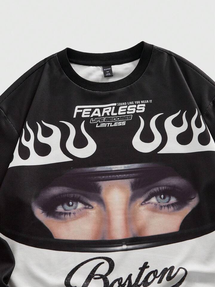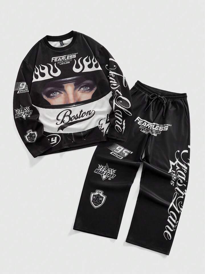 Street Life Conjunto de camiseta de manga larga y pantalones con gráficos de personajes digitales y motocicletas para hombres