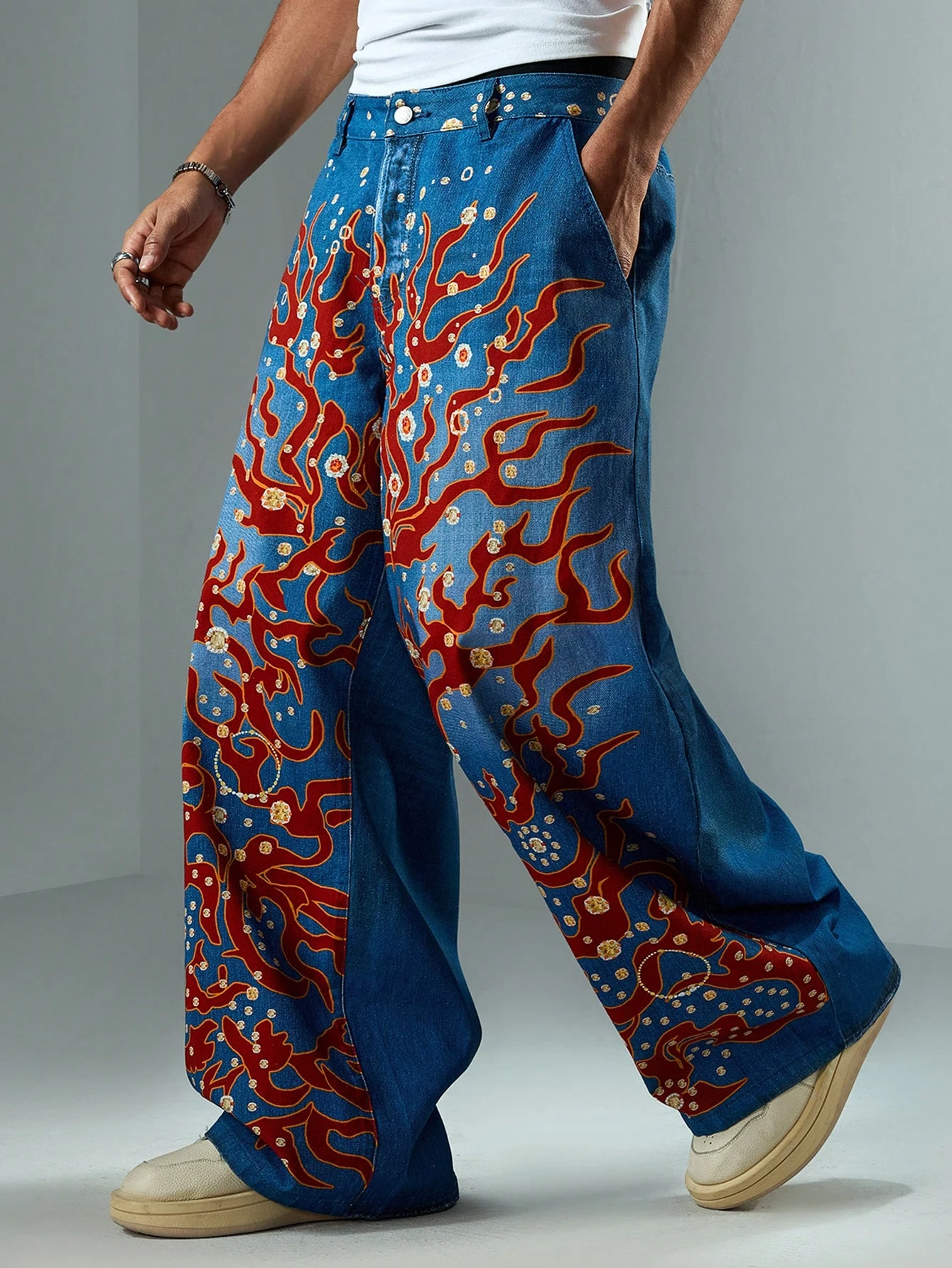 Street Life Jeans con pierna curva y estampado digital para hombres