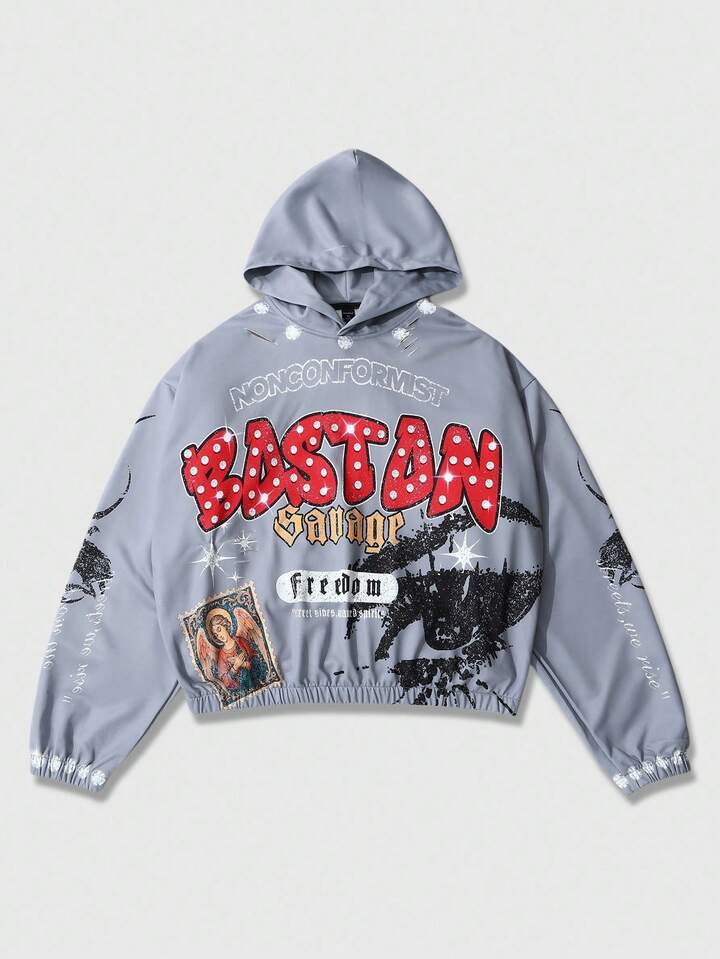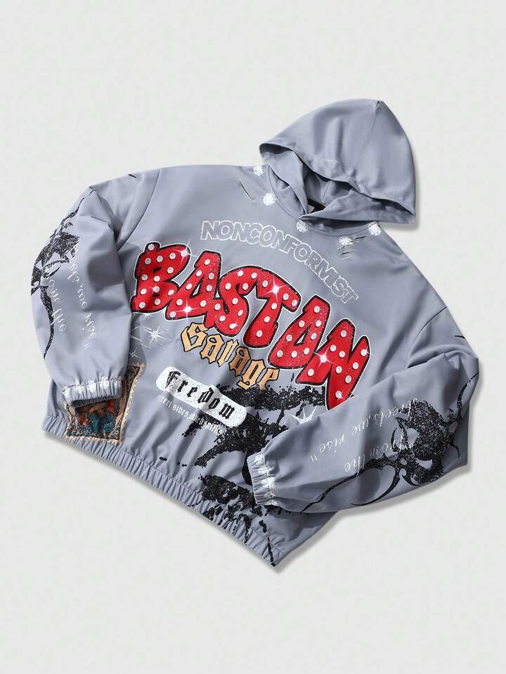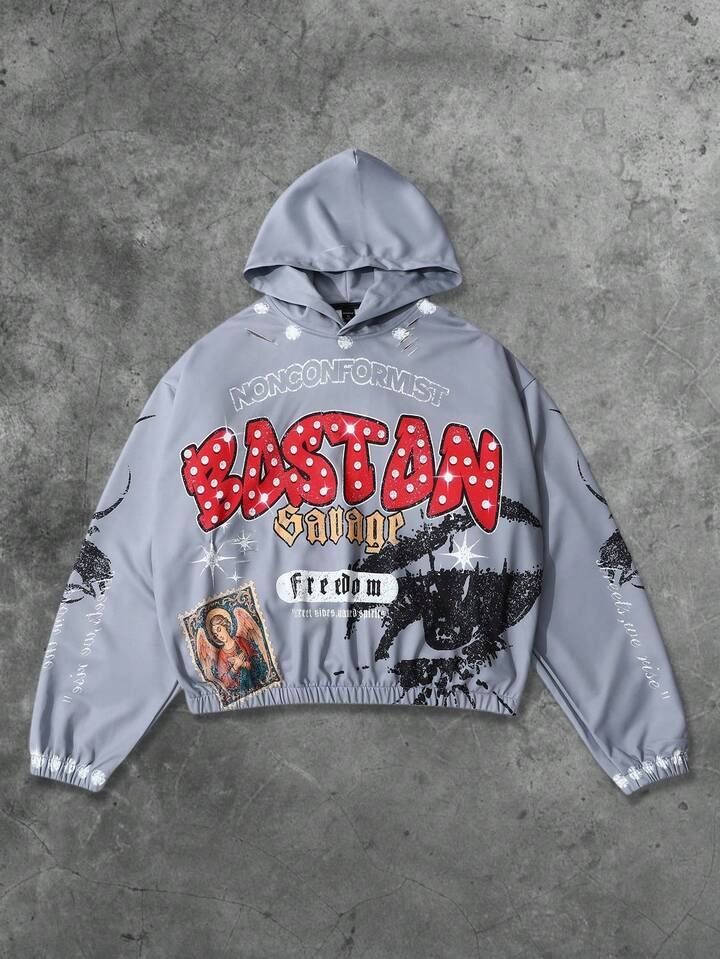 Street Life Sudadera con capucha de manga larga con estampado digital para hombre