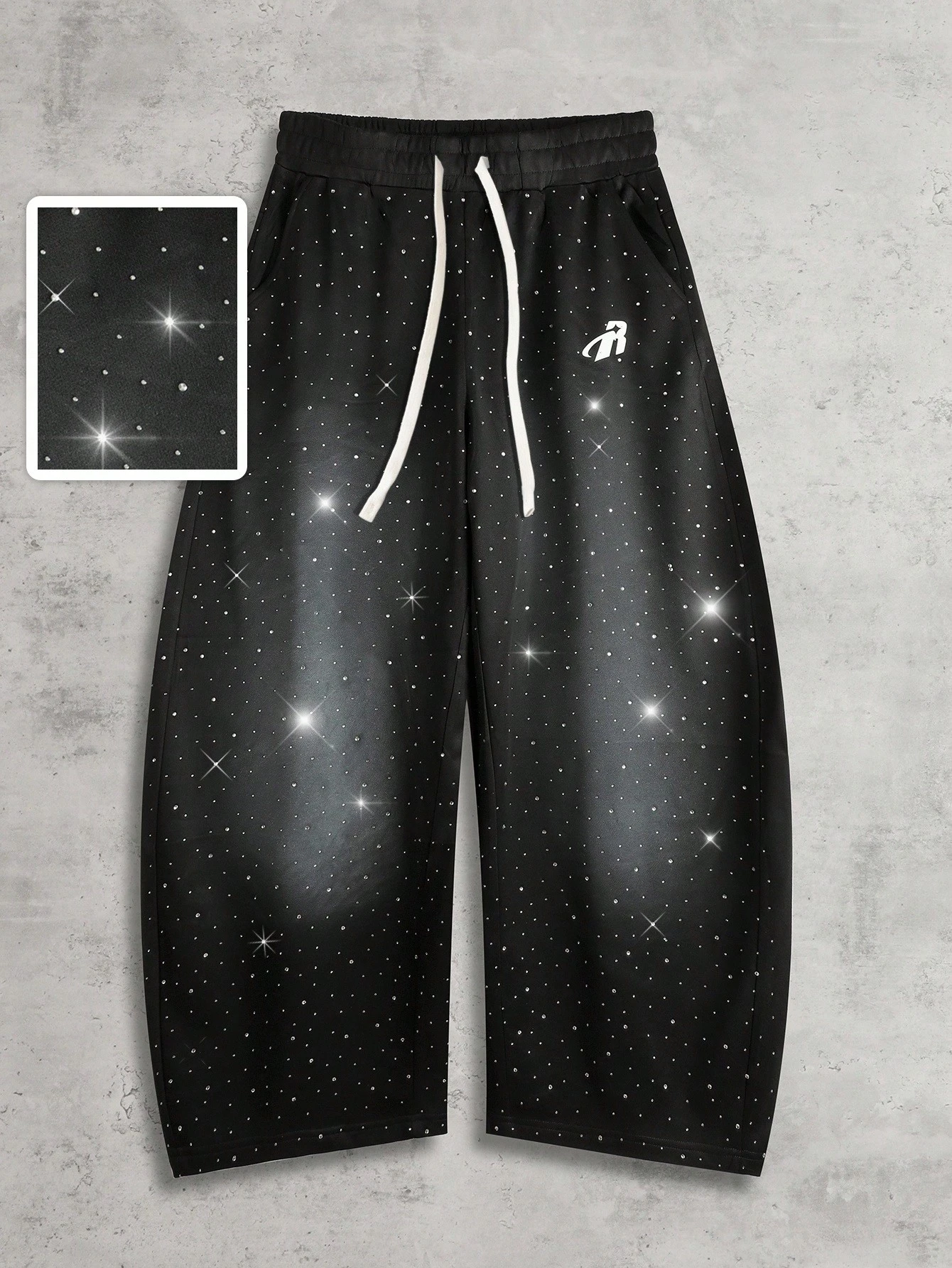 Street Life Pantalones de chándal con efecto desgastado y aplicaciones de rhinestones para hombres