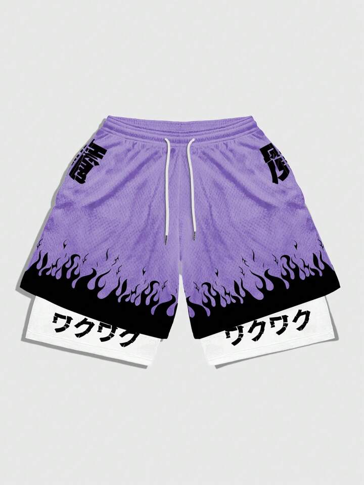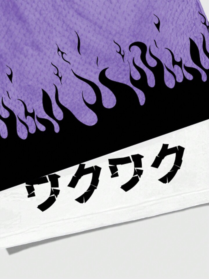 Street Life Pantalones cortos deportivos casuales con cordón y estampado de llamas para hombres