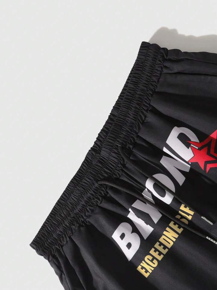 Street Life Pantalones casuales con estampado de letras y cordón en la cintura para hombre