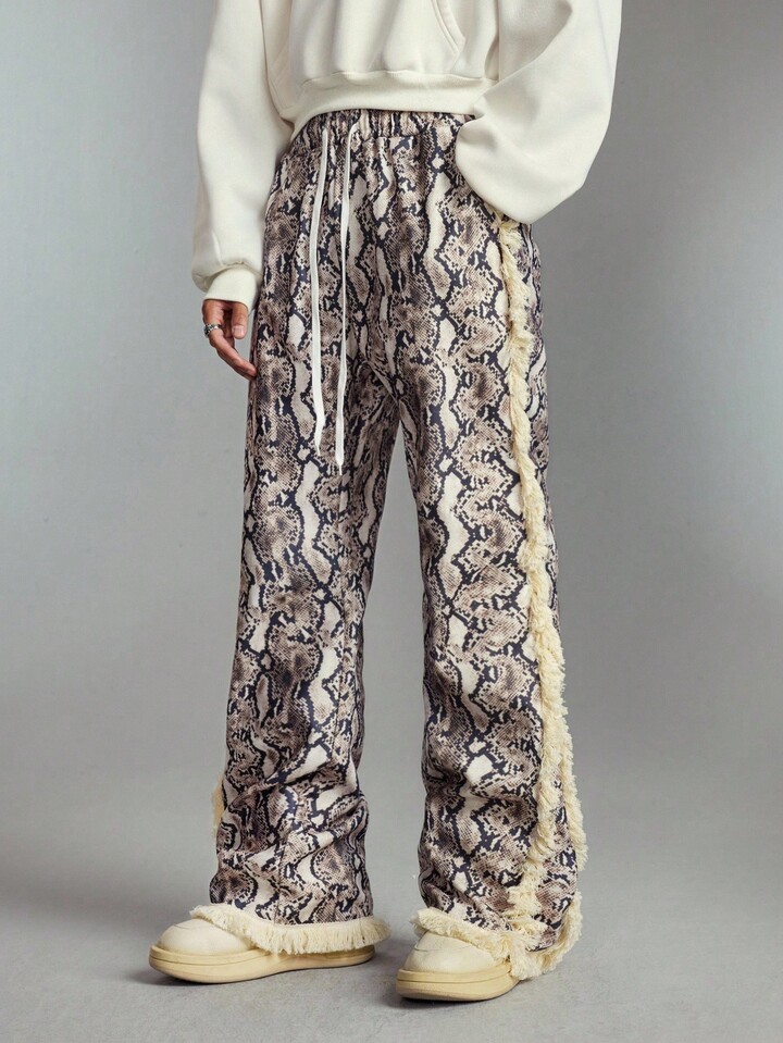 Street Life Pantalones largos holgados con cintura con cordón, con capas y efecto de piel de serpiente deshilachada, para otoño