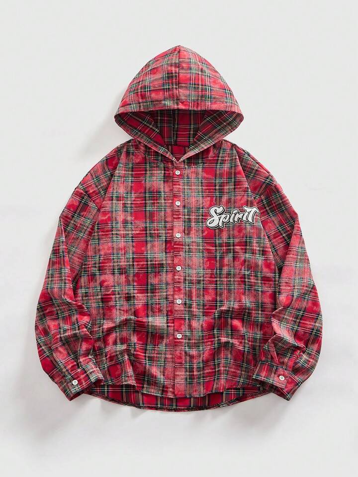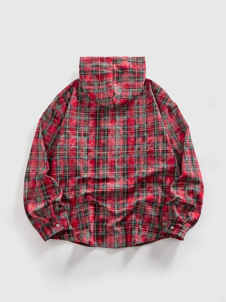 Street Life Sudadera con capucha casual de manga larga con botones y estampado a cuadros para hombres, versátil