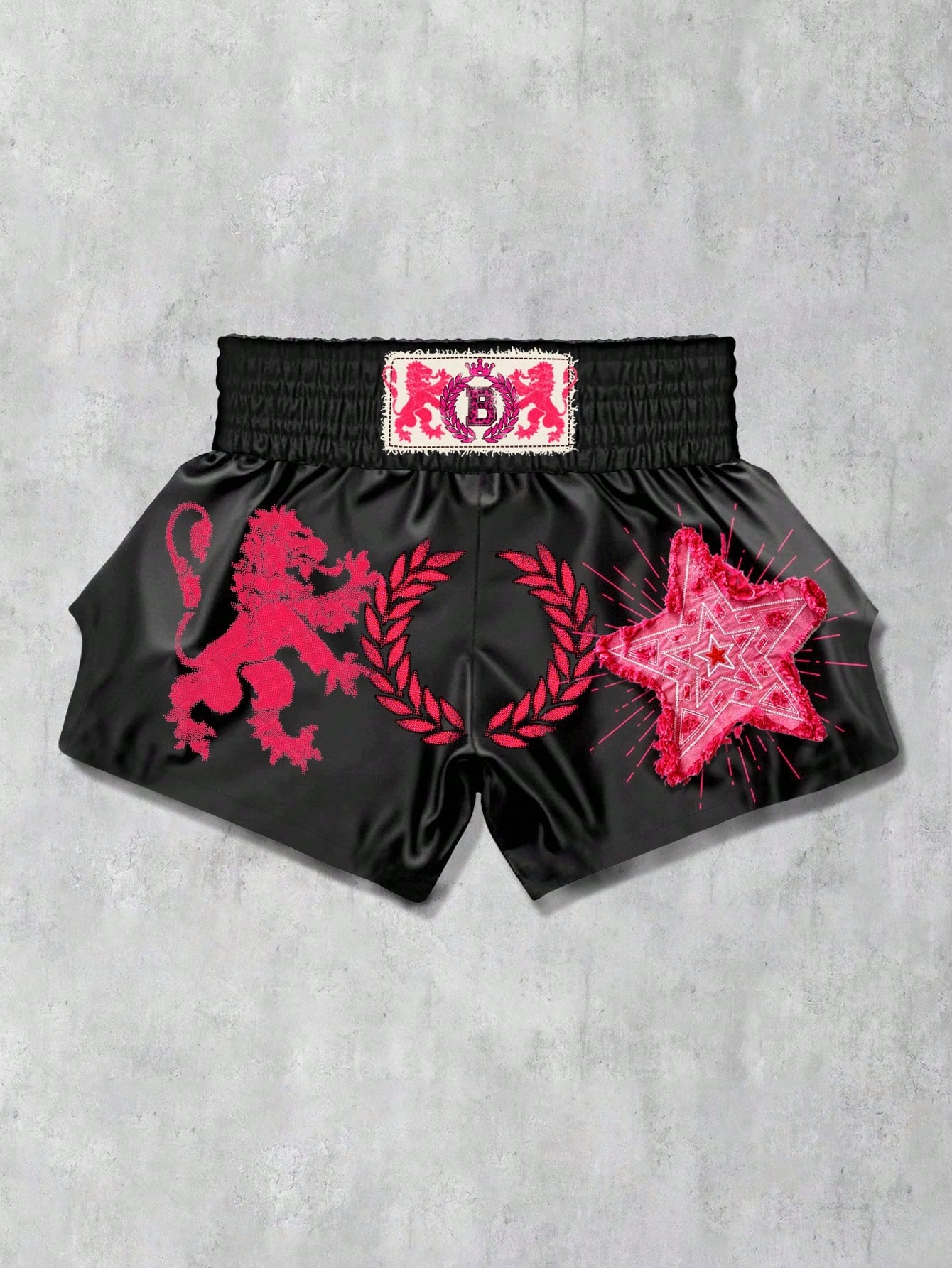 Street Life Pantalones cortos de boxeo casuales sueltos con cintura elástica y estampado de eslogan para hombres