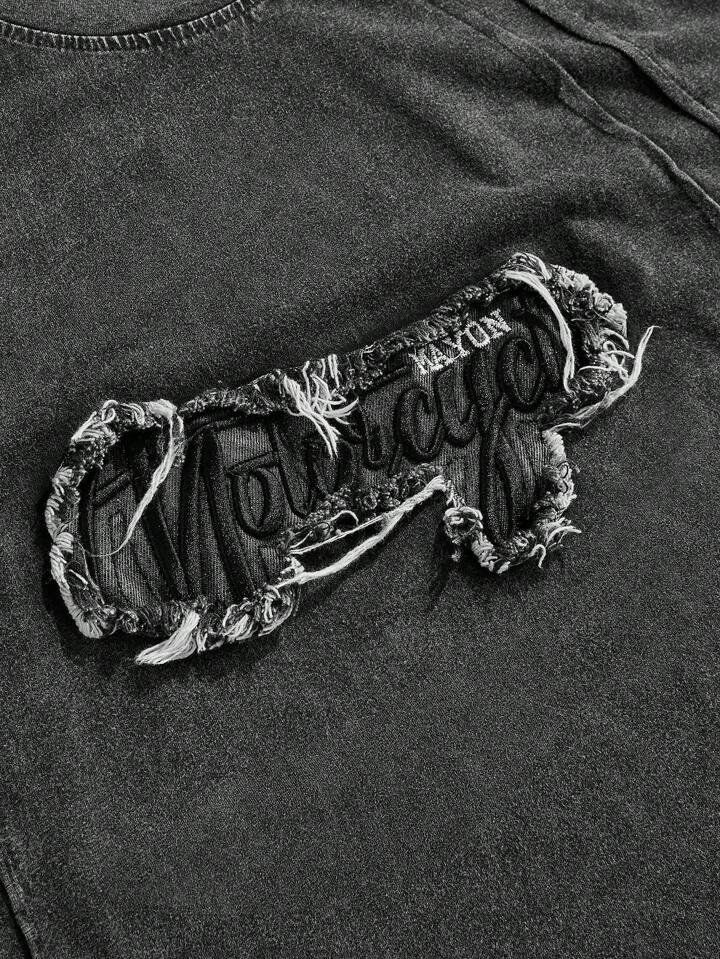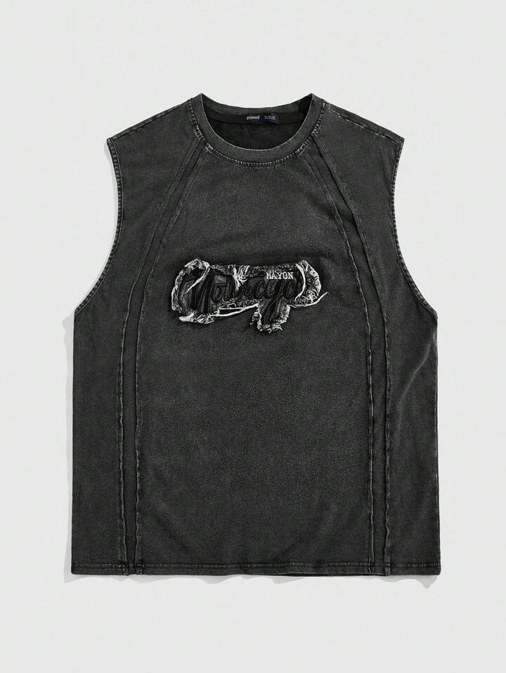Street Life Camiseta sin mangas casual de verano con cuello redondo y apliques bordados para hombre